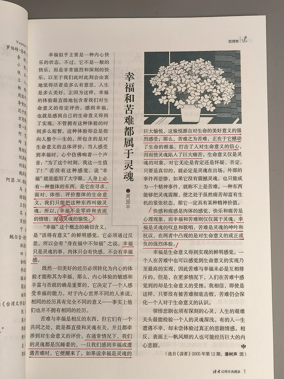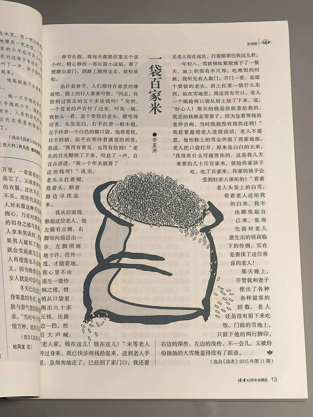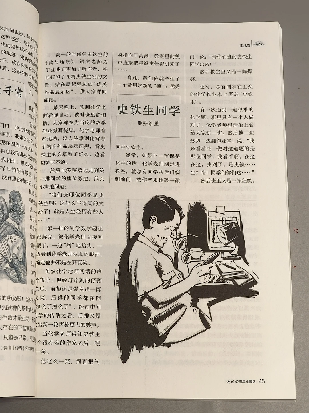 当《读者42周年典藏版》出现在眼前,熟悉的封面、淡雅的纸张,瞬间让我的心“扑通”狂跳!翻开的刹那,尘封的青春记忆如潮水般涌来,仿佛又回到了那个为文字痴迷的少年时代。