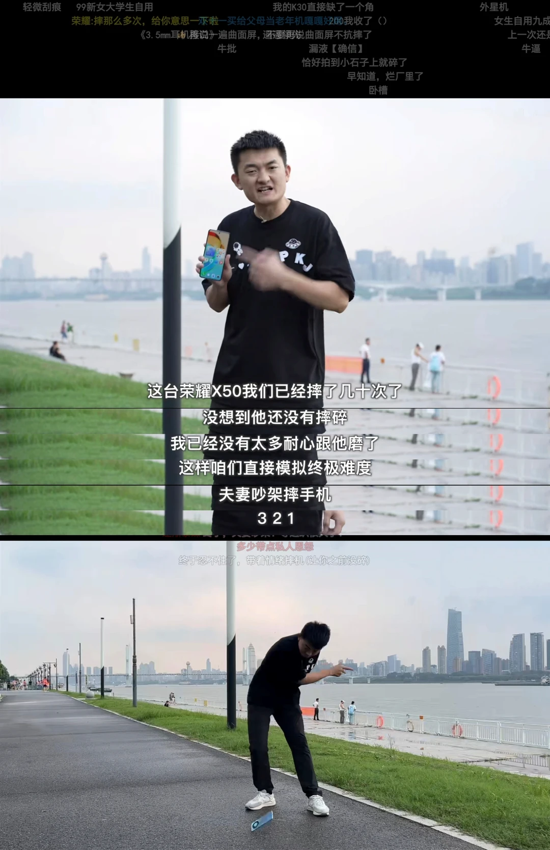 再强的抗摔手机都抵不过老婆的一摔?荣耀X50号称十面抗摔,在新评科技的不懈努力下,摔了整整39次,一次比一次高,一次比一次狠,结果没摔碎打了通关,最后新评科技无奈了,使出了传说中的夫妻吵架摔手机,抓起荣耀X50往水泥地板狠狠摔下。怎么样?大家会需要这这种1399又耐摔的曲面屏手机吗?