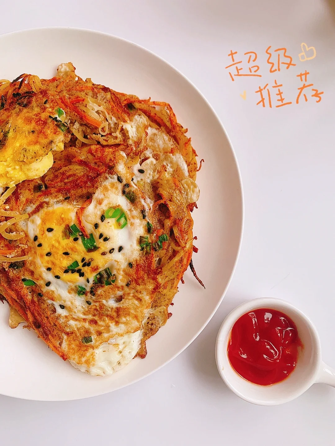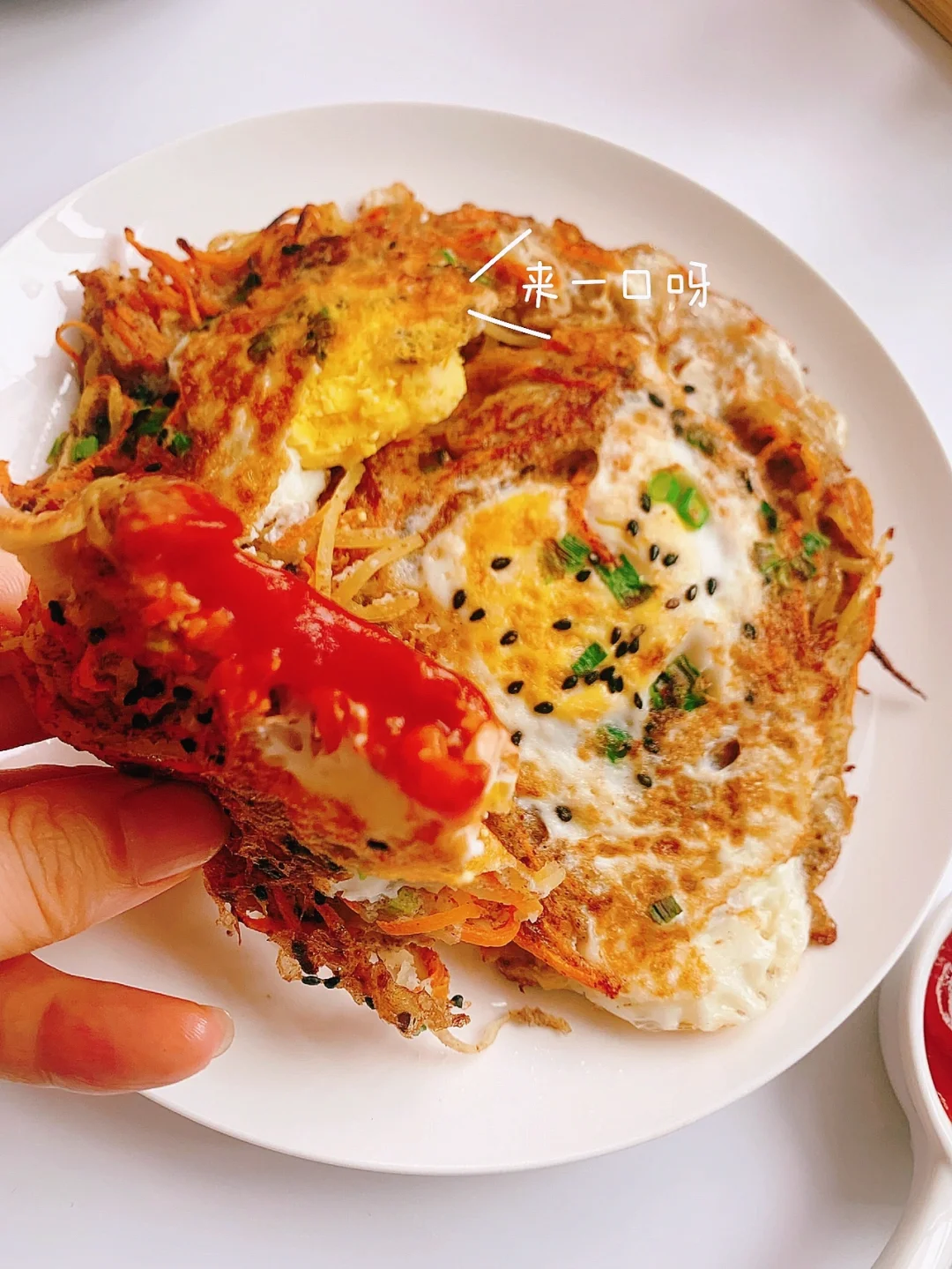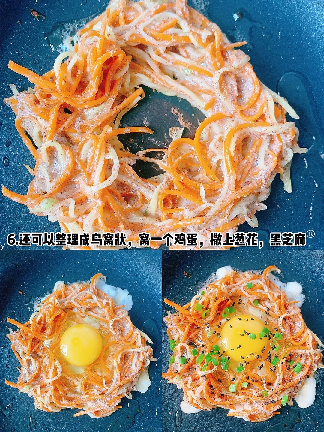 早餐不知道吃什么的看👀过来❗❗ ✨✨饱腹感强,吃一口就爱上的味道,十分钟就可以搞定的快手早餐饼,超级适合手残党。搭配番茄🍅酱真的是绝绝子[派对R][派对R][派对R] 【全麦土豆丝饼】送给你[向右R][向右R][向右R][向右R][向右R][向右R][向右R][向右R] 🥗食材: 土豆🥔,胡萝卜🥕,鸡蛋🥚,全麦粉 📝做法: 1️⃣土豆胡萝卜擦成细丝,加葱白,适量盐腌制五分钟。 2️⃣加入全麦粉翻拌均匀,加五香粉或者胡椒粉提味,打一个鸡蛋,拌匀即🉑煎饼了。 3️⃣锅内刷油,小火煎成小饼。 4️⃣还可以整理成鸟窝状,窝一个鸡蛋进去,撒上葱花黑芝麻。 ❤❤小提示: 1️⃣不用加水,腌制后会出水。 2️⃣土豆丝不用冲洗淀粉,这样煎出来的饼糯糯的。 [私信R][私信R][私信R]持续更新减脂餐。 🌈🌈🌈好好吃饭快乐减脂,愿大家多吃不胖呀❗