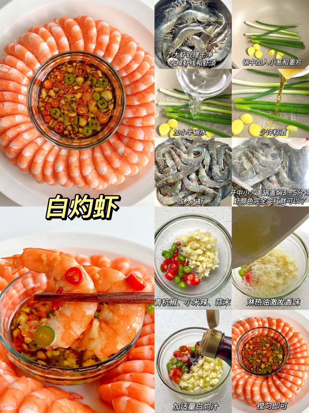 2023年夜饭菜谱,提前准备好了。大年三十餐桌上少不了 1紫气东来 2蒜蓉粉丝虾 3白灼虾 4葱油鲍鱼 5清蒸鲈鱼 6虾饺锅贴 7蒜泥白肉 8蒸蒸日上 年夜饭吃点啥 "年夜饭 "年夜饭桌的家家必备菜