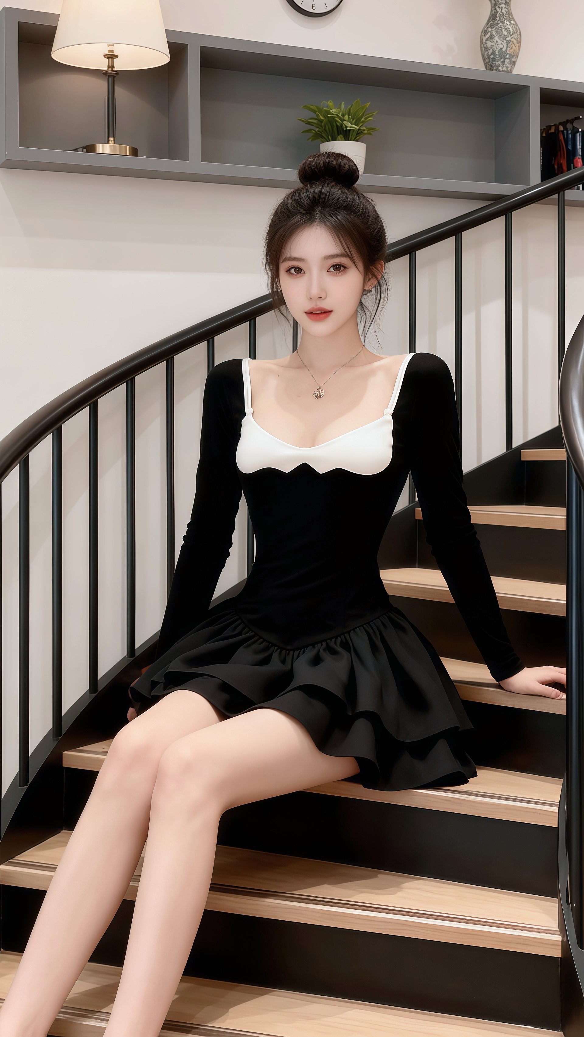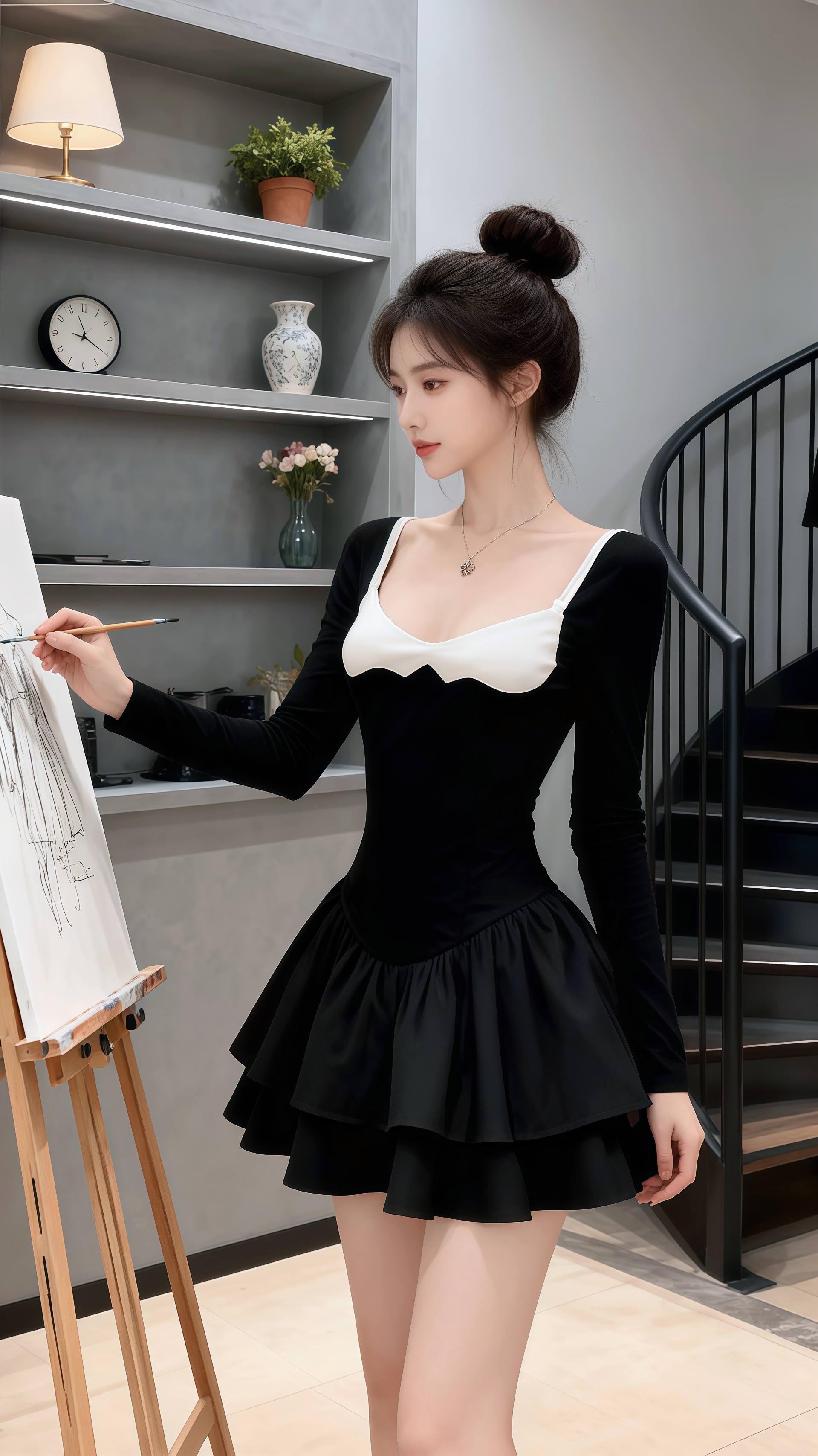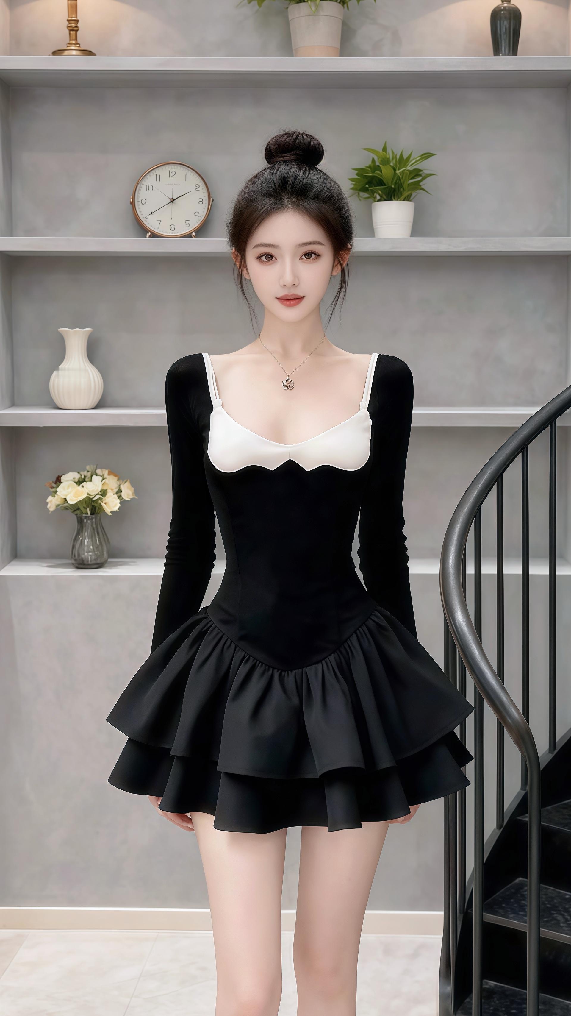 在简约雅致的空间里,许妍如优雅的黑天鹅,黑白撞色的裙装勾勒出曼妙身姿,层叠裙摆漾起灵动韵律,将时尚与柔美揉成一抹惊艳的风景。连衣裙 气质穿搭 御姐范儿 外穿内搭都好看 今天穿什么