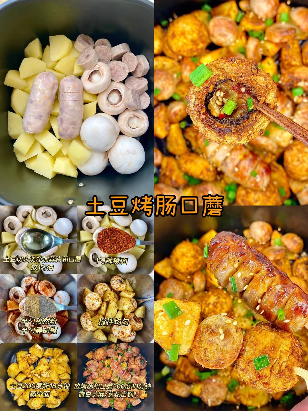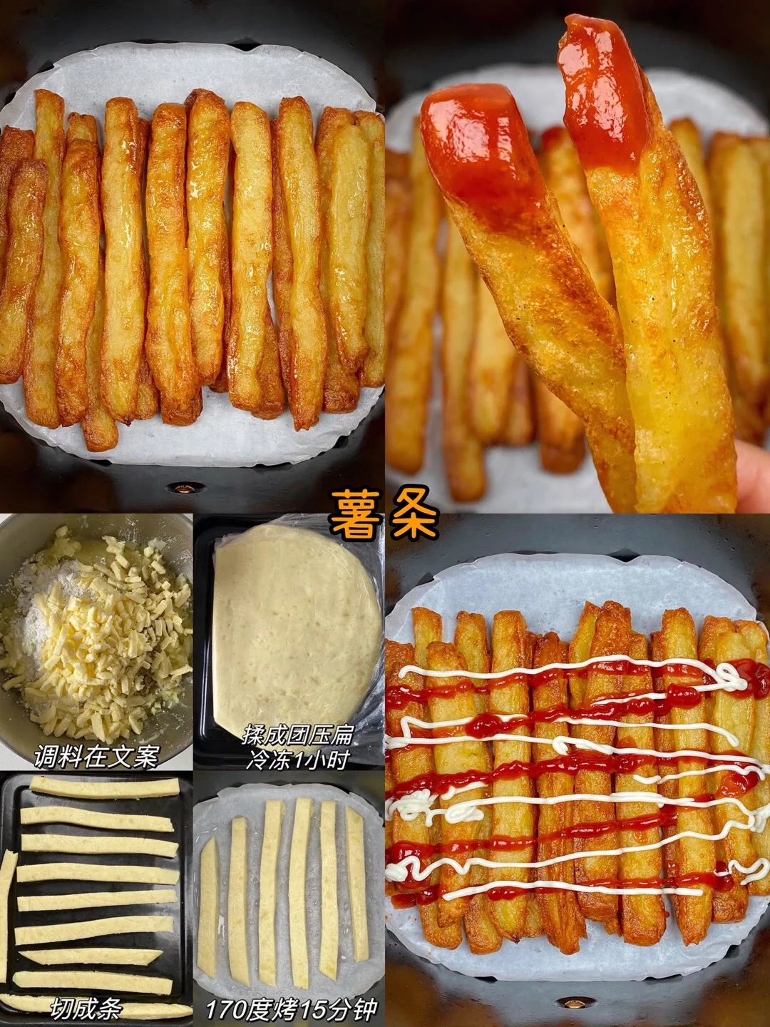 热气腾腾的三餐 笔记灵感 有幸在朋友家吃过一次,直接买了个空气炸锅!炫就完事!当然宝子们先学会动手,或者艾特做给你吃的人做给你吃咯 薯条(土豆上锅蒸熟压成泥,放入淀粉、盐、黑胡椒粉,揉成团)