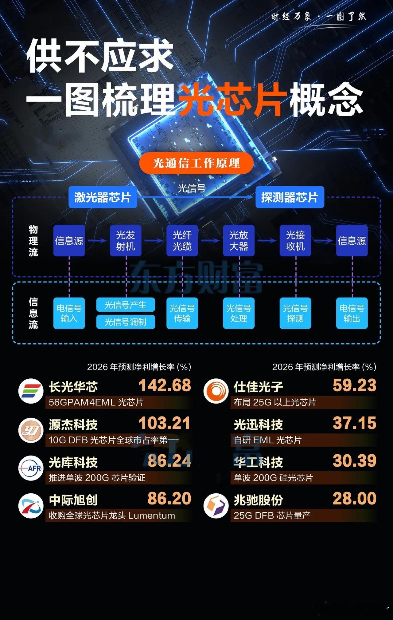 近期光芯片市场供需矛盾全面激化,100G/200G EML、高功率CW DFB等高端产品缺口达25%-30%,成为产业链最紧缺环节。1.6T光模块需求保底2000万只,对应200G EML芯片需求1.6亿颗,但全球可交付产能仅5000万颗,仅能支撑600万只模块生产。订单交付周期从3个月延长至6个月以上,磷化铟衬底库存告急,部分厂商出现“有料就收”的抢购现象,核心产品价格稳中有升。解读需求端:AI算力爆发是核心引擎,英伟达GB200集群、Quantum-X交换机推动800G/1.6T光模块加速迭代,1.6T模块对磷化铟衬底需求较800G提升300%。5.5G基站建设、车载激光雷达等新场景扩容,进一步放大需求缺口。供给端:瓶颈集中于磷化铟衬底,全球产能被日美企业垄断,扩产周期长达2-3年,国内总产能仅满足全球15%需求。海外厂商扩产保守,叠加硅光技术尚未完全成熟,短期难以缓解紧缺格局。国产替代:国内厂商在100G EML良率、6英寸衬底技术上实现突破,国产化率快速提升,成为填补缺口的关键力量。相关产业链上市公司光芯片核心标的:源杰科技(国内唯一IDM模式激光器龙头,200G EML配套1.6T模块)、长光华芯(100G EML良率92%,切入头部供应链)、仕佳光子(AWG芯片全球份额超60%,CPO用光源送样)。光模块龙头:中际旭创(1.6T硅光方案主力出货,子公司营收大增148%)、新易盛(1.6T模块获海外50亿美元订单,自研芯片良率85%)。材料配套企业:云南锗业(6英寸磷化铟衬底量产,成本较进口低40%)、光库科技(全球唯二量产800G TFLN调制器,供货英伟达)。