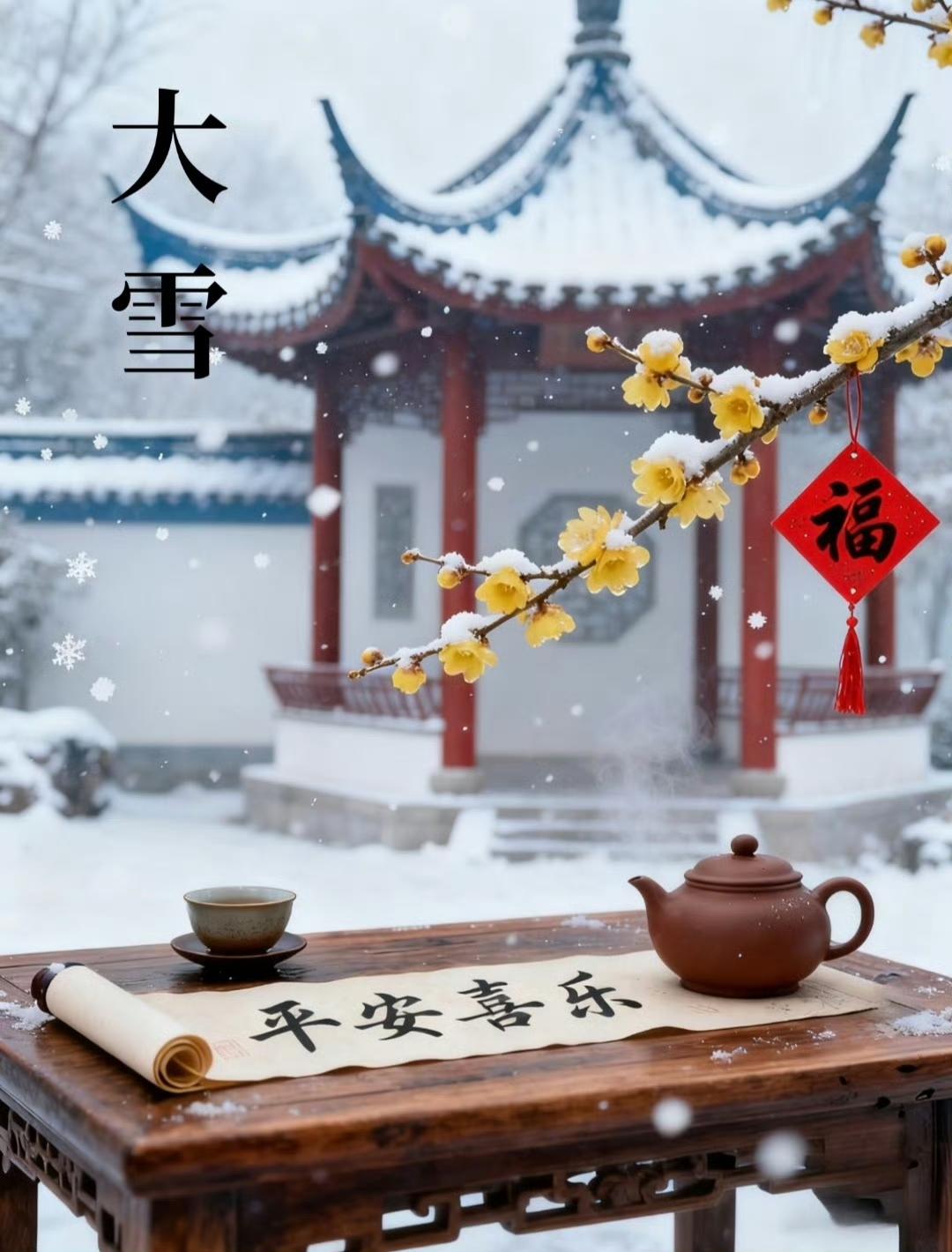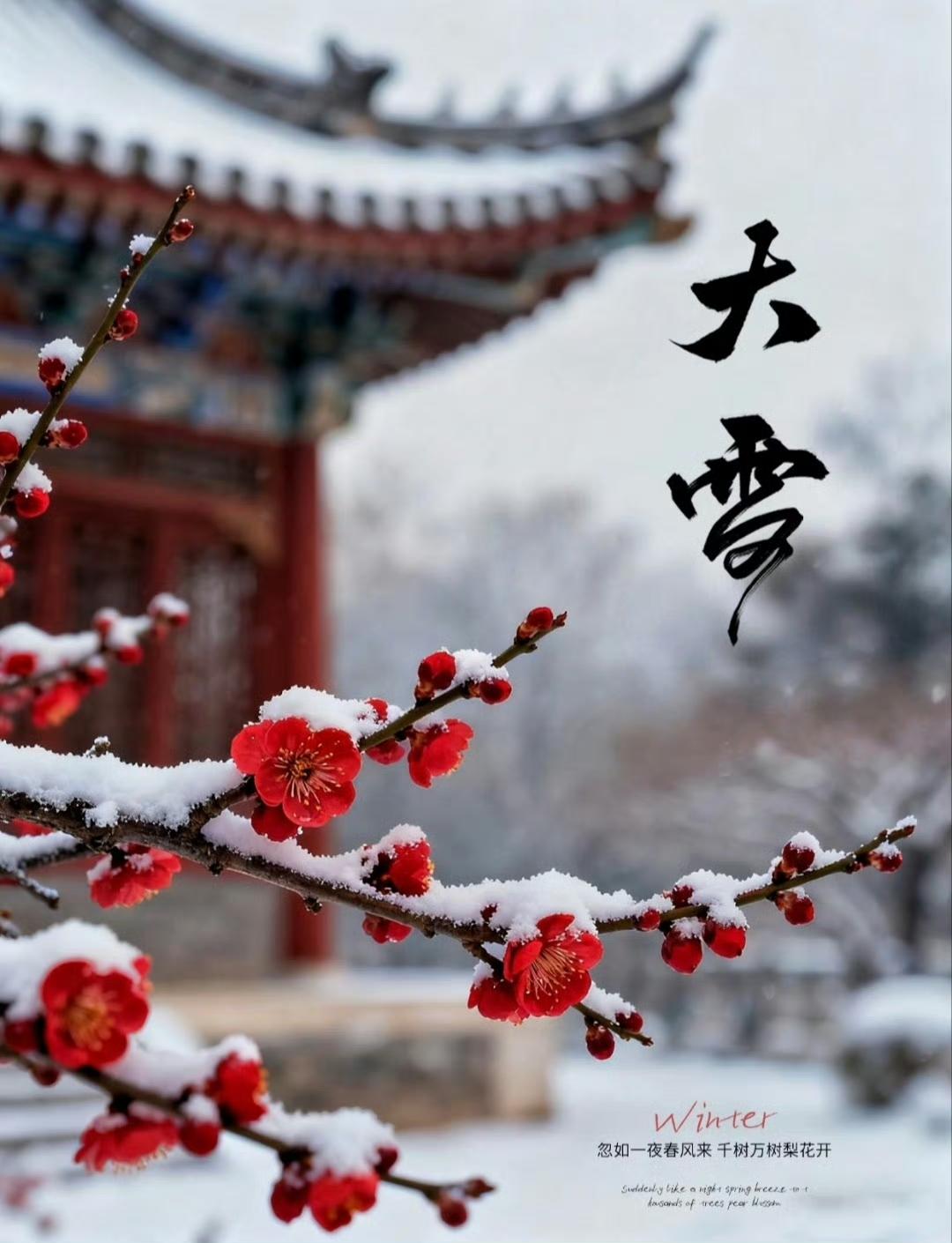 【 今日 · 大雪 】--- “大雪”是农历二十四节气中的第21个节气,更是冬季的第三个节气,标志着仲冬时节的正式开始。《月令七十二候集解》说:“大雪,十一月节,至此而雪盛也。”国学智慧 小雪
