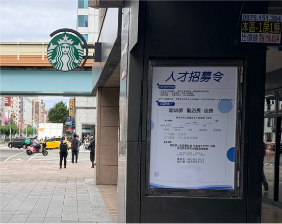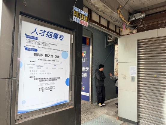 此间原本铁门深锁的店面,也因为传闻为瑞幸咖啡在台首店,成了附近最热门的话题。媒体记者到此地探访时发现,紧锁的店面贴出三张纸。第一张是蓝底白字的“人才招募令”,里面标明招聘咖啡师到店长的薪资等。