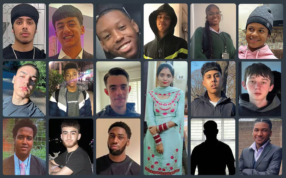 英国国家统计局发布的一个报告也显示,从2023年至2024年3月的一年时间内,在全英国发生的13岁到19岁的青少年凶杀案中,有83%的人是被锐器所害,占全年龄段受害者的46%。