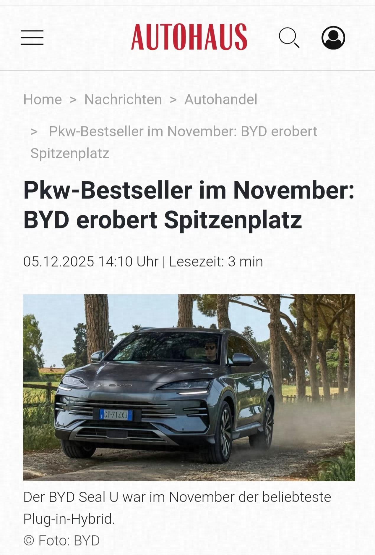 现在正是德国汉堡马拉松比赛期间,记不得上次去德国是哪年了?好像是疫情前吧~那时路上都还是德国大众、奔驰,偶见一些日系小车,中国品牌几无!汉堡马拉松 不过最近风向好像发生了翻转,比亚迪等国产品牌开始登陆德国,看了一下好像卖的还不错!据说咱们的宋plus(德国叫BYD SEAL U)都成了德国11月车市插混车型销量冠军了。这不仅是中国汽车品牌首次在德国主流细分市场登顶,逆势斩获市场佳绩,我觉得也大大提振了国车出海的信心! 我特意看了一下数据: 在德国市场,比亚迪1-11月累计销量为19,197辆,同比增长逾647.5%;11月销量为4,026辆,同比激增逾834.1%,市场份额提升至1.6%。 不仅在德国哦,在老牌的英国市场比亚迪1-11月累计销量也很亮眼,4.3万辆的成绩已经可以碾压大部分汽车品牌了。 与此同时,在西班牙市场、在意大利市场,在法国市场,比亚迪都在突飞猛进!不仅销量喜人,市场份额也在极速攀升! 事实上,欧洲销量再创新高的背后,是比亚迪整个海外市场成绩的缩影。2025年1-11月,比亚迪乘用车及皮卡海外累计销量已突破91万辆;仅11月单月海外销售即达131,661辆,同比增长297%。比亚迪全球新能源汽车累计销量已超过1470万辆。 这背后,是我们视角的扩大,逻辑的变迁,更是中国品牌对于品质、品牌的重视与提升。大变局的今天,还有比这更振奋人心的吗!