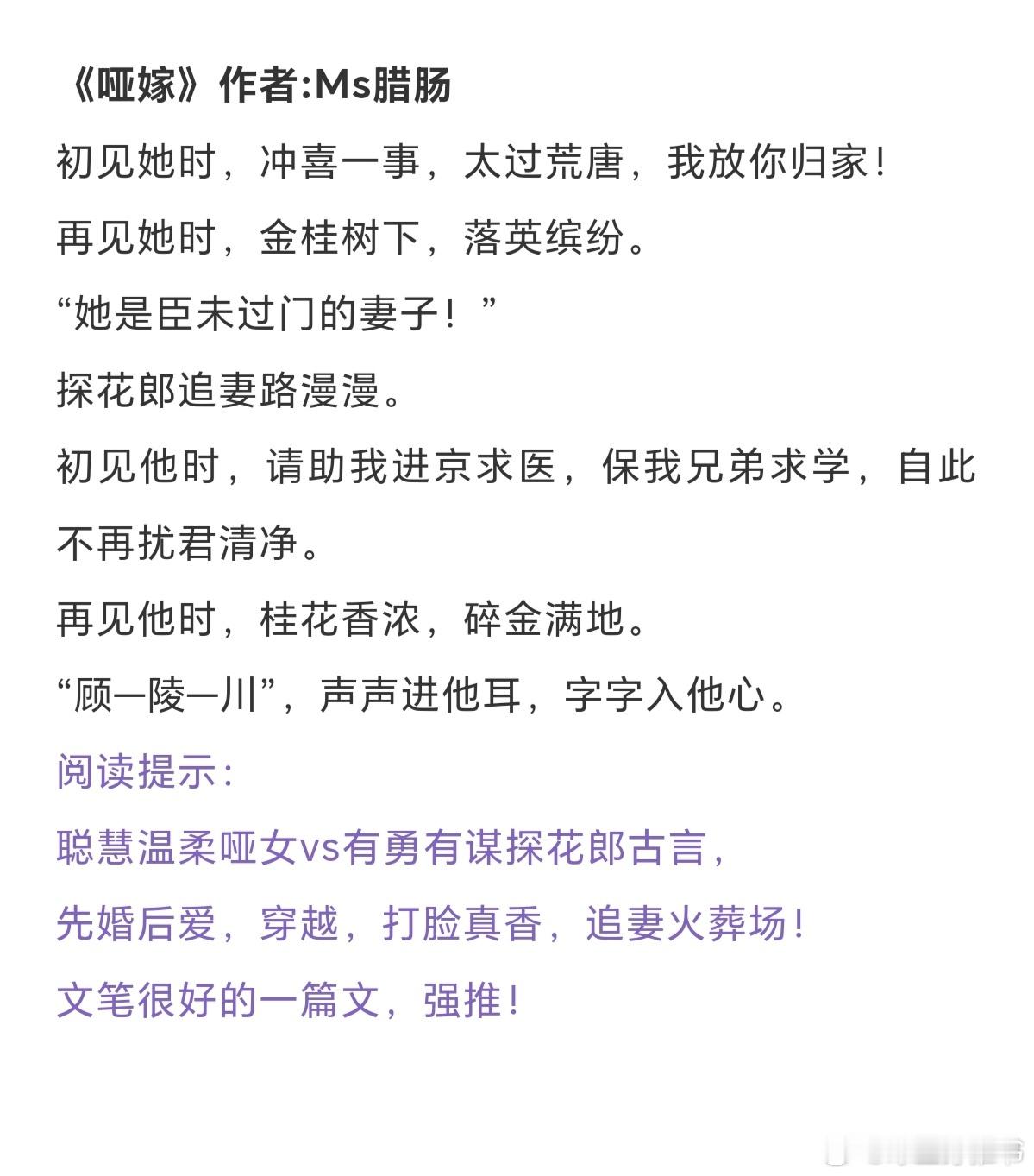 今天推荐的十本宝藏古言,真的太好看了,古言控的姐妹可不要错过了,码住慢慢看!《上京春事 》作者:白鹭成双《惊山月》 作者:冬天的柳叶《朕与夫人》作者:阮阮阮烟罗《醉玉翻香》 作者:海青拿天鹅《宦妃天下》作者:青青的悠然《御前新赐紫罗裙》 作者:厘梨《和离小娘子》 作者:马晓样 《世子的逃妻》作者:水墨染《金吾不禁,长夜未明》作者:伊人睽睽《哑嫁》作者:Ms腊肠言情小说推荐古言