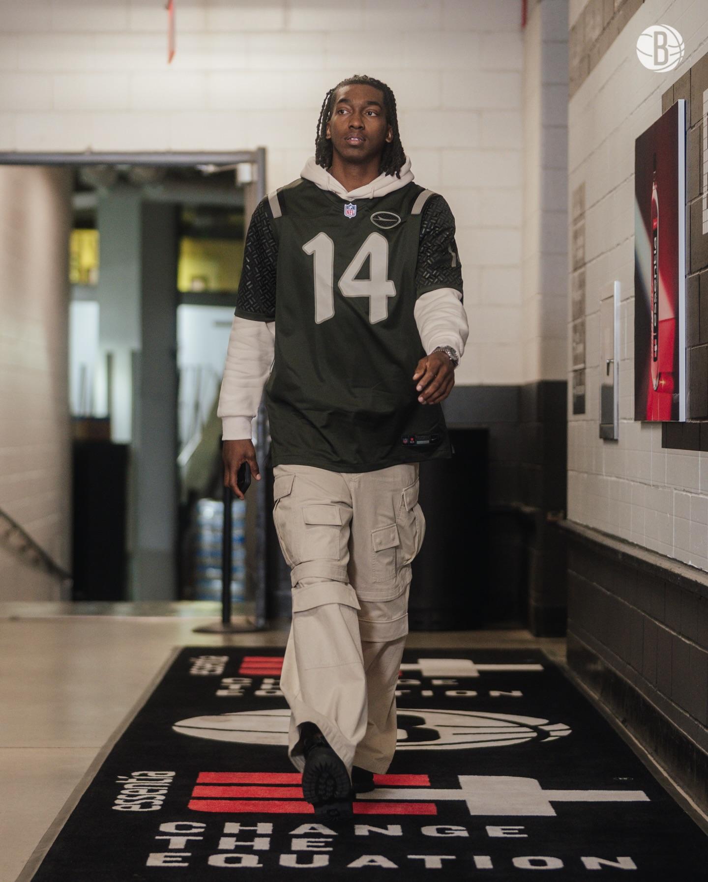 虎扑12月07日讯篮网官方更新社媒,晒特伦斯-曼展示展示其定制的纽约喷气机队Rivalries系列球衣。