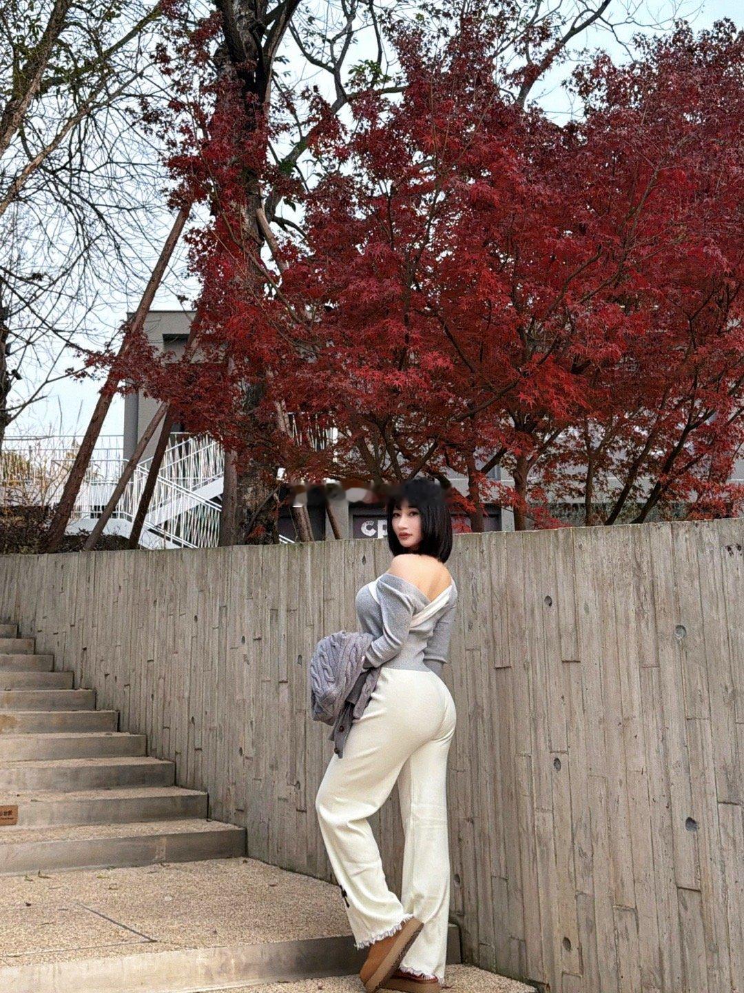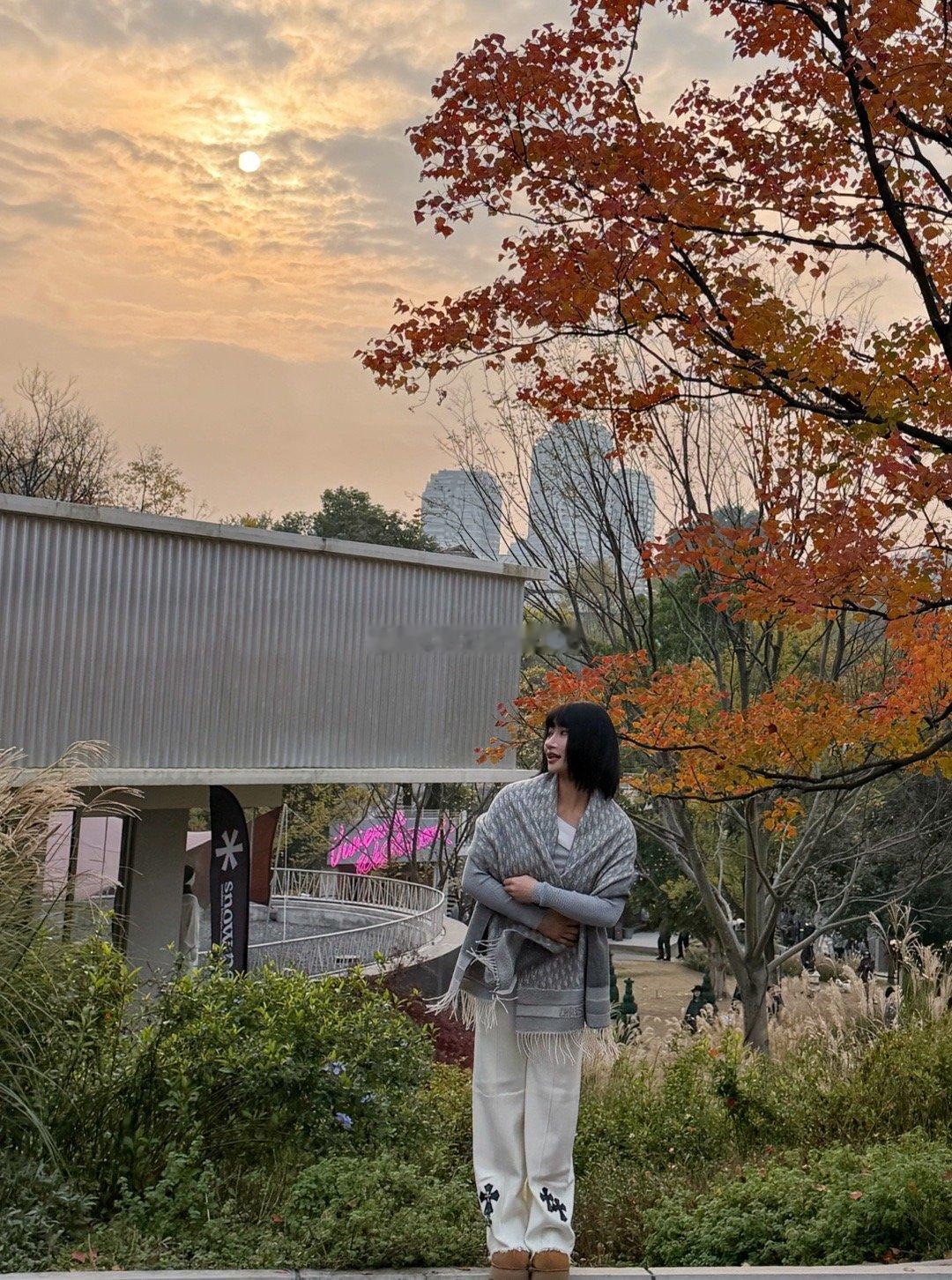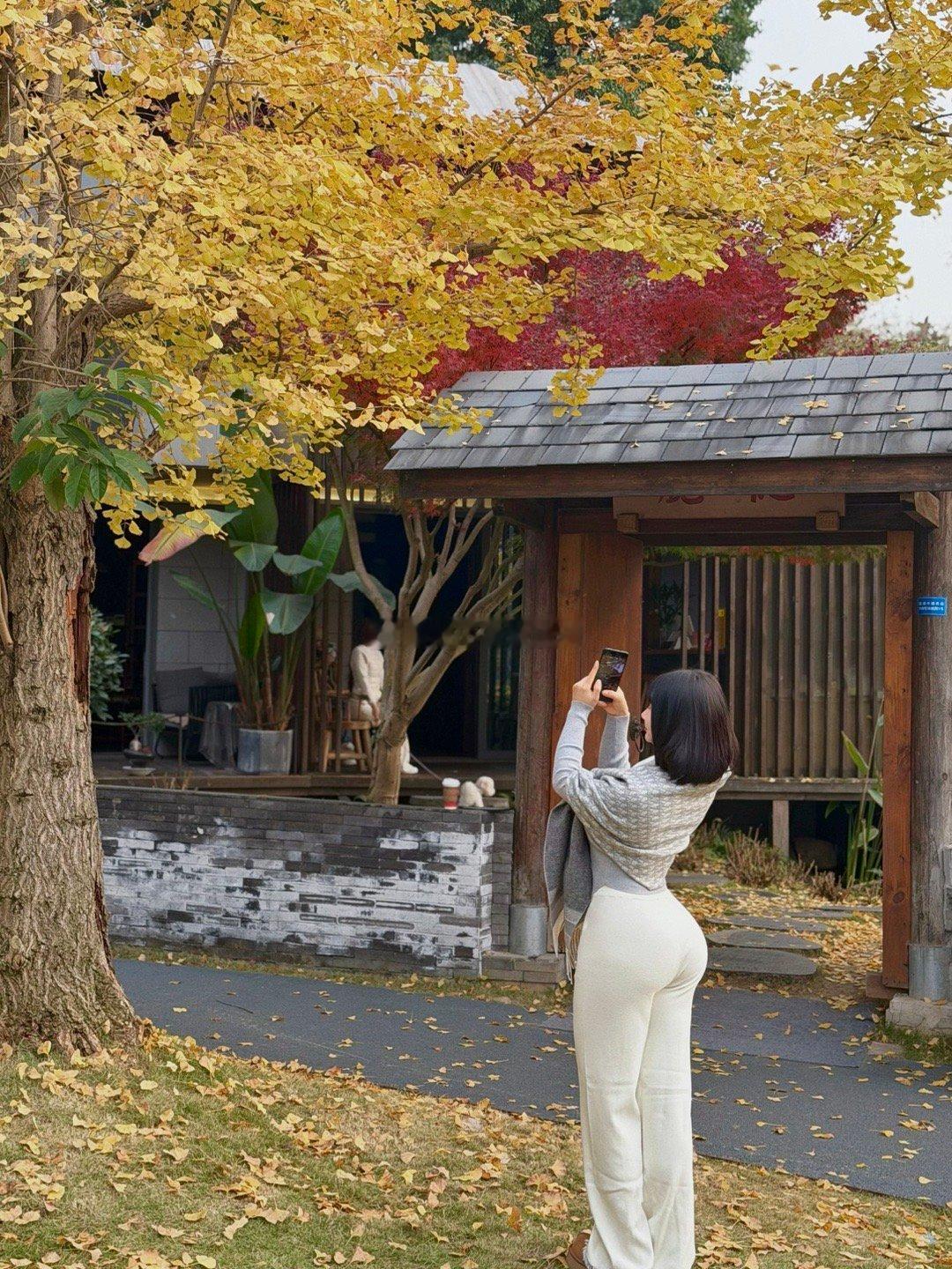 秋日暖阳下,美女漫步在金黄的林间小道,唯美浪漫。