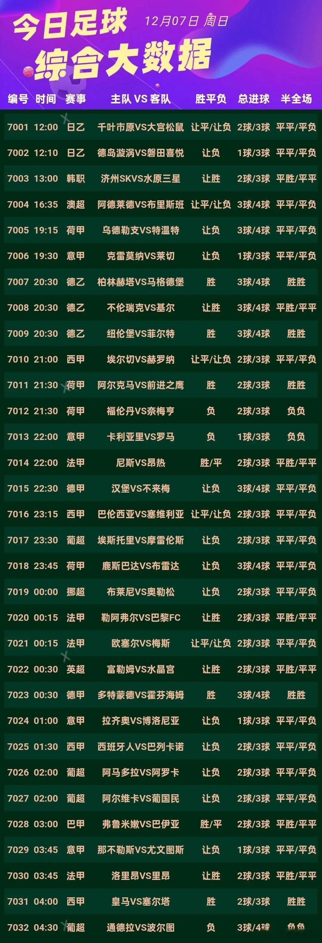 12月7日007 柏林赫塔VS 马迪堡008 布伦斯维克VS 基尔009 纽伦堡VS 菲尔特010 埃尔切VS 赫罗纳011 阿尔克马尔 VS 前进之鹰012 福伦丹VS 奈梅亨013 卡利亚里 VS 罗马014 尼斯VS 昂热 015 汉堡 VS 不莱梅016 巴伦西亚 VS 塞维利亚017 埃斯托里尔VS 摩雷伦塞018 鹿特丹斯巴达VS 布雷达019 布莱尼VS 奥勒松