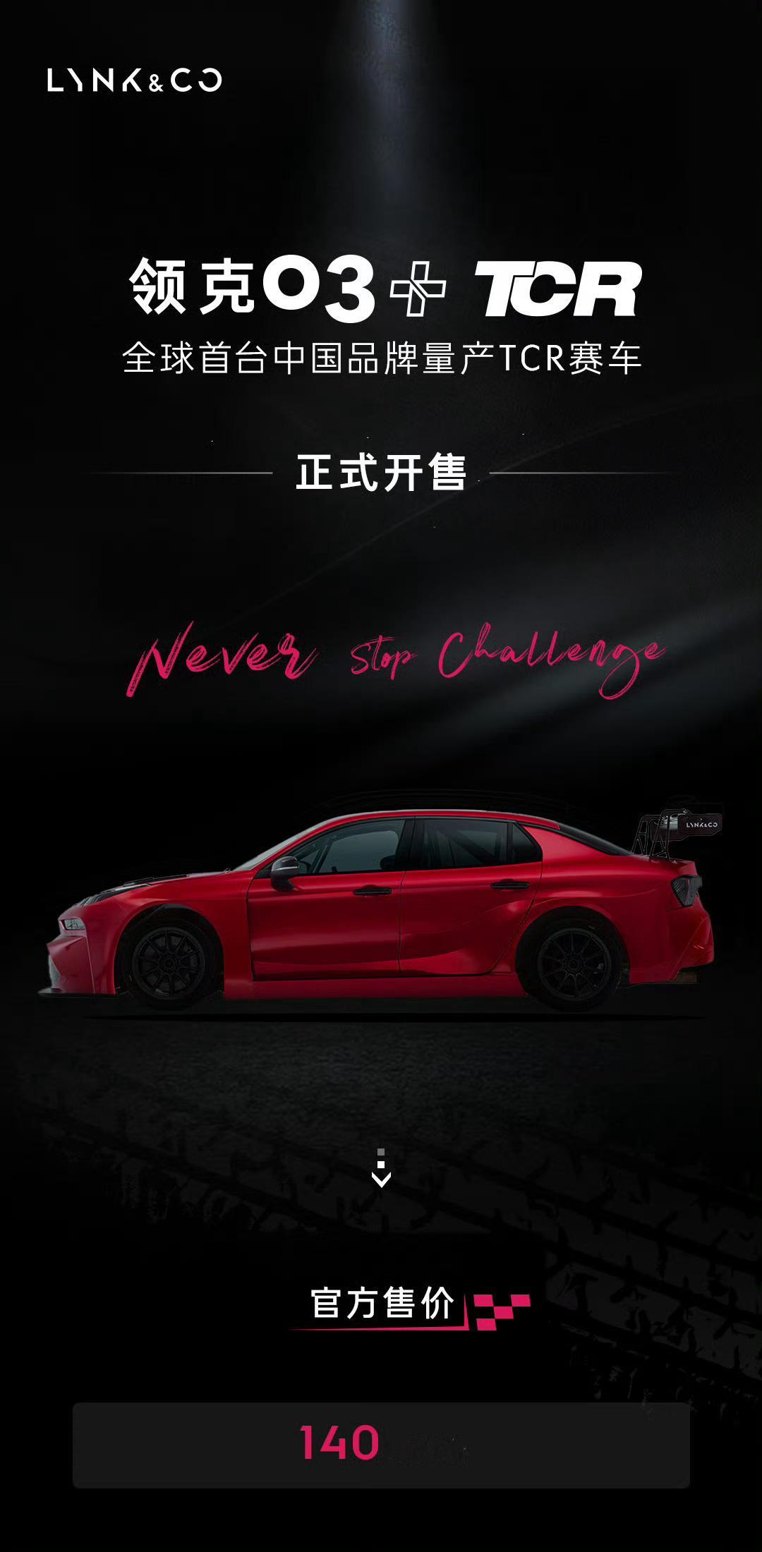 全球首台量产中国品牌TCR赛车🏎️领克03+TCR开售售价140万,首批订单秒光。不仅送价值4万的冠军车手大师课帮你愿赛车梦,还送价值5万的定制车主微电影给你记录高光时刻,领克不要太会了,情绪价值拉满帅是真帅,就是不能上路,专供赛道使用。