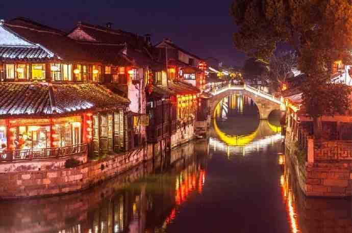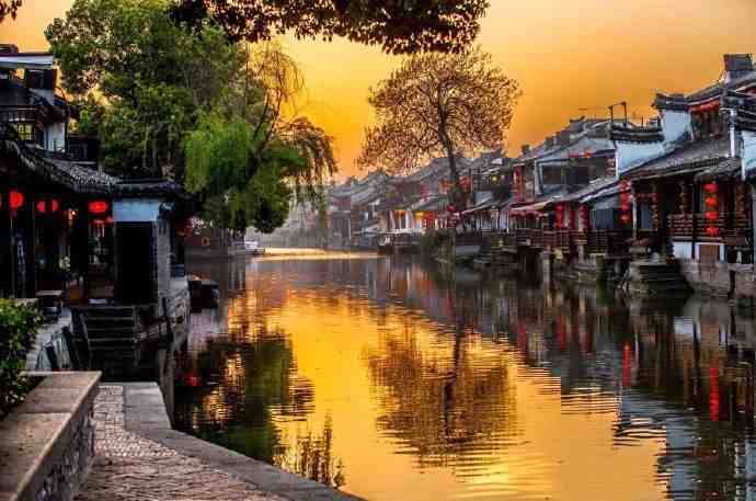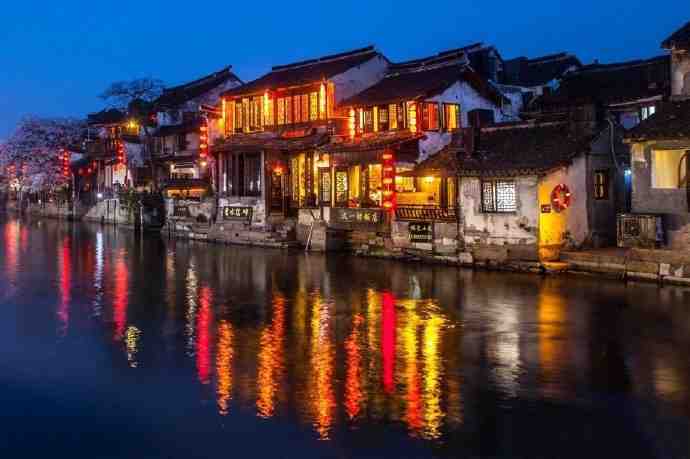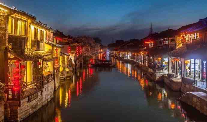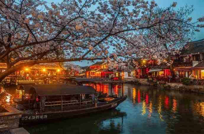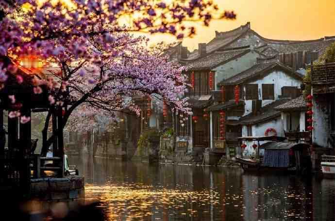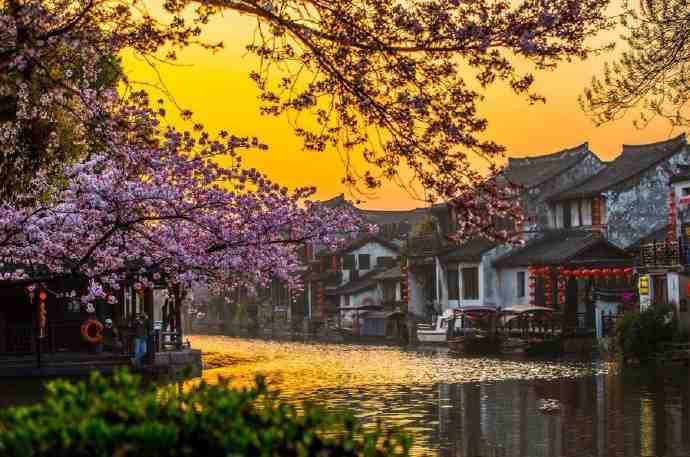 黄昏下的西塘古镇,色彩斑斓如油画。