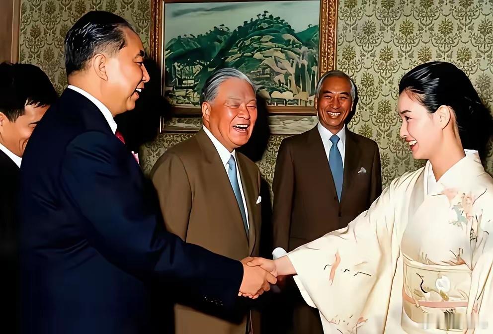 1980年5月27日,华国锋访问日本,接见中野良子(真优美),在场的有大平正芳等
