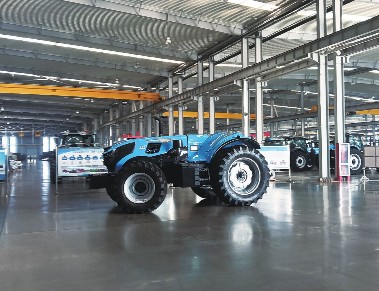 鲁中拖拉机生产的"智牛"无人拖拉机。其采用5G技术,搭载北斗系统,装备360度全景摄像头,更有借助毫米波激光雷达等多种技术进行综合运算,能够实现精准定位,数据快速传输,已实现有条件无人驾驶,达到L3级,具备目标识别与事件响应能力。孙永剑/摄