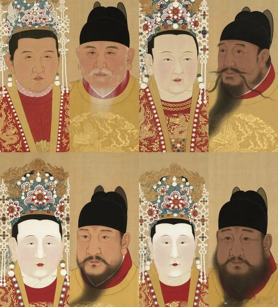没想到有一天能给朱元璋反黑朱元璋不是月牙脸,不是鞋拔子脸。那个著名鞋拔子脸图是清抹黑他的。图一这张图左边朱元璋中年时,中间朱元璋晚年时,右边朱元璋他姐的儿子。图二这张图朱元璋及其祖孙四辈,没有一个是月牙脸。