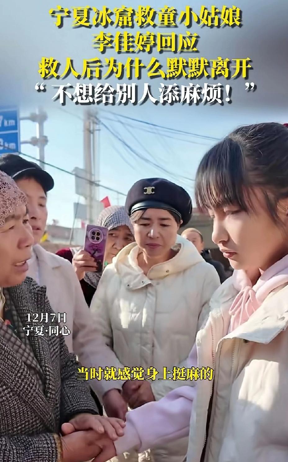 【学校为爬冰救人女孩申报见义勇为:13岁的她,藏起英雄的样子更动人】 12月8日,宁夏同心县第二中学的国旗下,13岁的李佳婷攥着鲜花红了脸——这个几天前裹着湿衣悄悄离开冰窟的姑娘,成了全校的“小英雄”。 校长当场宣布:学校已正式为她申报“见义勇为先进个人”。而台下的掌声里,藏着她更暖的“小心思”: 救人后浑身湿透,她骗爸妈“是洒水车淋的”;消防员赶到时,她悄悄躲进人群,只说“不想添麻烦”;连手臂上的划伤,也是被救男童家长登门道谢时才被发现。 “当时没想别的,就想搭把手。”面对全校的注视,李佳婷轻声说,“但现在知道,遇到危险要先喊大人、再想办法。” 这不是“退怯”,是13岁姑娘从“本能勇敢”到“理性善良”的长大。而学校把她的故事做成了安全教育案例:“表扬勇气,更要教会保护自己。” 这个冬天,最暖的不是冰面化开的水,是藏在湿发后的笑,是不想添麻烦的温柔,是被全校看见的——13岁的滚烫与明亮。大学生救人不言 受助者携旗致谢 你会义不容辞地选择见义勇为吗