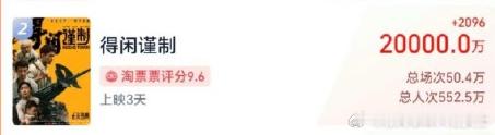 得闲谨制票房破两亿得闲谨制总票房破两亿 黑马逆袭!《得闲谨制》票房破两亿,低排片