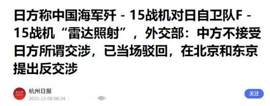 琉球上空的较量!   当地时间 12 月 7 日凌晨两点,日本防卫大臣小泉进次郎顶着黑眼圈召开紧急记者会,声音嘶哑地对中国军机 “开火”。这场打破日本自卫队 70 多年惯例的深夜发布会,把琉球海域上空一场惊心动魄的空中较量彻底摆到了台面上。   就在几小时前,日本两架 F-15J 战机先后被中国歼 - 15T 舰载机用火控雷达锁定,座舱里的告警器响得刺耳,飞行员连规避动作都做不利索,最后灰溜溜逃出了演练空域。   事情得从 12 月 6 日的西太平洋说起。当天上午,辽宁舰航母战斗群带着南昌舰等 “带刀护卫”,在距离琉球群岛 270 公里的国际海域展开训练,歼 - 15T 舰载机挂载实弹频繁起降,机翼下的霹雳 - 15 导弹在阳光下闪着寒光。   这本是符合国际法的正常演训,日本自卫队却如临大敌,一下子派出 1 艘军舰、2 架巡逻机,还有数架 F-15J 战机扑了过来,贴着辽宁舰的核心防卫圈打转,摆明了要搞监视挑衅。   “立即离开演练空域!” 歼 - 15T 飞行员通过国际频道发出警告,可日方战机装作没听见,还试图加速逼近。见对方敬酒不吃吃罚酒,歼 - 15T 的飞行员干脆切换了雷达模式。   机鼻里那台第三代氮化镓有源相控阵雷达瞬间开机,1800 个收发单元同步聚焦目标,300 公里外就能探测隐身目标的超强性能,这会儿对付老旧的 F-15J 简直是降维打击。短短 3 秒,雷达波就牢牢 “粘” 上了第一架 F-15J,火控系统自动完成了导弹参数装订。   被锁定的瞬间,日方飞行员的座舱里立刻红光爆闪,刺耳的告警声差点盖过发动机轰鸣。   他心里比谁都清楚,火控雷达照射可不是闹着玩的,这是导弹发射前的最后一步,就像被狙击手瞄准了太阳穴,只要对方按下发射键,自己连反应的机会都没有。慌乱中,他猛地拉杆俯冲,拖着黑烟狼狈地逃出了锁定区域。   可日本自卫队偏要硬撑脸面,半小时后又派来第二架 F-15J 反扑。这次双方在空中缠斗了 30 多分钟,歼 - 15T 干脆玩起了 “猫捉老鼠”—— 一会儿用雷达间歇照射施压,一会儿加速绕到对方侧后方占据攻击阵位。   日方飞行员几次想摆脱锁定,却发现无论怎么机动,歼 - 15T 的雷达波束始终像影子一样跟着自己,座舱告警器就没停过响。最后实在撑不住了,只能灰溜溜地掉头返航,连监视任务都没完成。   这场较量根本不是一个量级的对抗。日本的 F-15J 早就是 “爷爷辈” 的战机了,从上世纪 80 年代服役至今,平均机龄高达 37.3 年,70% 的机身都快到使用寿命了。   座舱里还是老式机械仪表,雷达用的是几十年前的 AN/APG-63,探测距离才 135 公里,跟歼 - 15T 的 300 公里探测范围比,简直是 “近视眼对上千里眼”。   更别提武器差距了,F-15J 挂的还是老旧的 “麻雀” 导弹,射程勉强过百,而歼 - 15T 带的霹雳 - 15 射程超 200 公里,今年 5 月印巴空战中,巴基斯坦就是用这款导弹击落了印度的阵风战机,创下了超视距空战的经典战例。   说白了,日方战机连歼 - 15T 的影子还没看清,就已经被锁定了。这种 “看不见对手就被判死刑” 的差距,才是小泉进次郎连夜跳脚的真正原因。   他在记者会上喊着 “中方行为超出安全范围”,却绝口不提日方战机先闯防卫圈的挑衅;他强调 “12 年来首次出现此类事件”,却回避了日本近期在涉台问题上的恶意言论,正是这些言论把中日关系推向了紧张边缘。   反观中国海军的表现,堪称 “实力自信的教科书”。没有贸然开火,却用雷达锁定传递了明确信号;既守住了演训底线,又没给对方炒作 “军事冲突” 的口实。这种 “点到为止” 的威慑,比真刀真枪更有力量 —— 它让周边国家看清,中国海空力量早已不是当年的水平,任何挑衅都会付出代价。   如今琉球海域的硝烟虽已散去,但这件事留下的信号很清晰:老旧战机撑不起霸权野心,政治碰瓷换不来安全优势。   日本与其半夜开会抗议,不如好好算算自己的战机还能飞几年;与其跟着别人搞 “对华围堵”,不如学学尊重国际法。毕竟在绝对的实力差距面前,所有的挑衅都是自取其辱。