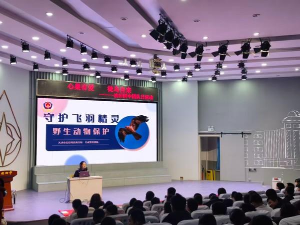 同学们首先观看了北大港湿地主题视频,北大港湿地自然保护区管理中心野生动植物保护科、2025年滨海新区科普大使张欣达为师生带来生态公益讲堂,以专业而生动的讲解,从湿地鸟类的栖息习性、迁徙规律,到现代科技在鸟类监测与保护中的创新应用,系统而深入地为同学们揭开了鸟类世界的神秘面纱。随后,天津市公安局滨海分局警官通过鲜活现实的案例让同学们认识到非法捕猎野生鸟类行为的残酷性和违法后果,并向大家介绍了正确救助野生鸟类的方法,帮助同学们树立了正确的是非观、法律观和安全观。在这场生态教育的课堂上,同学们学习了野生动物保护知识,了解相关法律法规,共同筑牢了生态保护的思想防线。