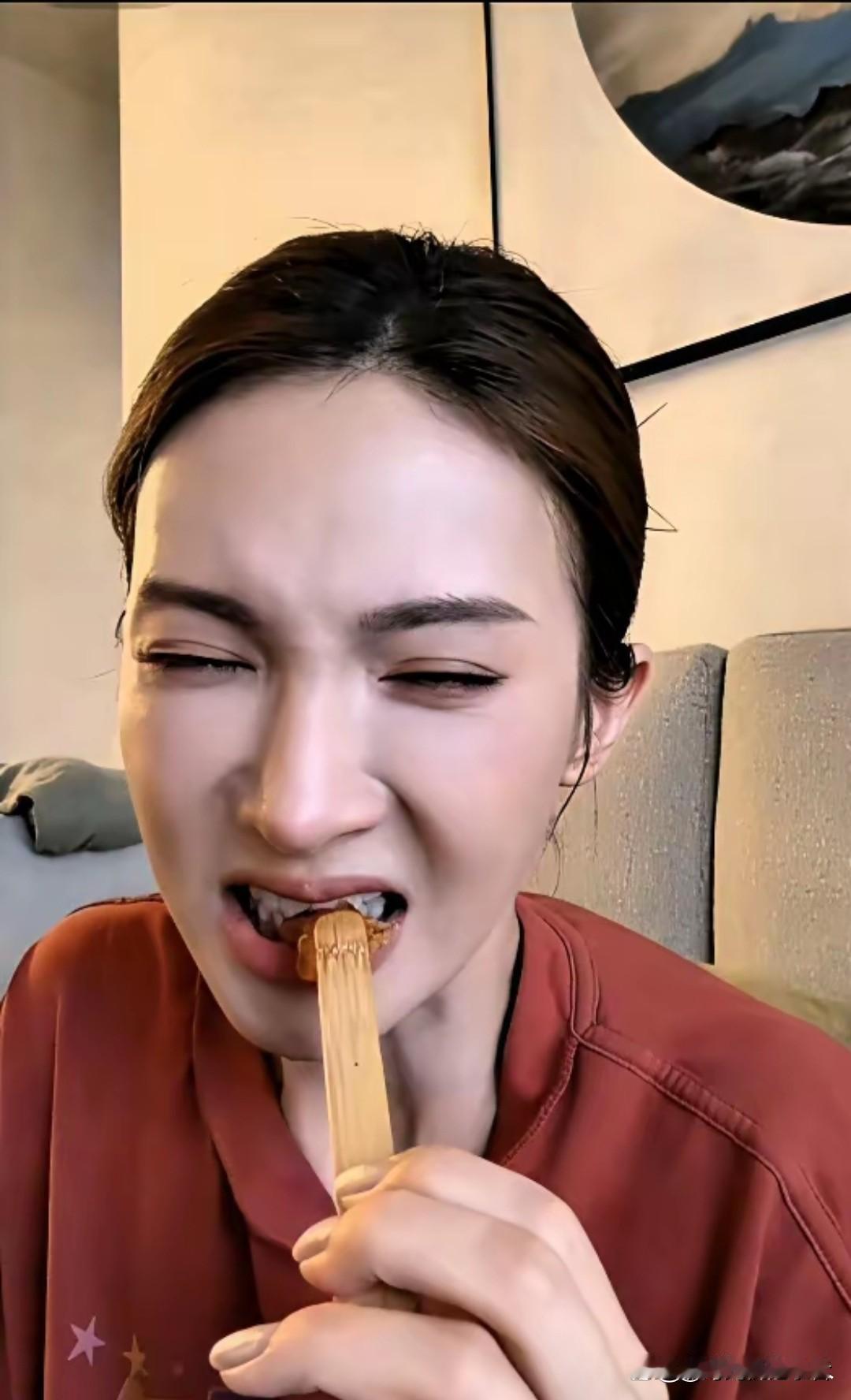 金晨真是太不注意形象啦,吃酸果这表情真是看的人直流口水,金晨也是改变了自己的妆容