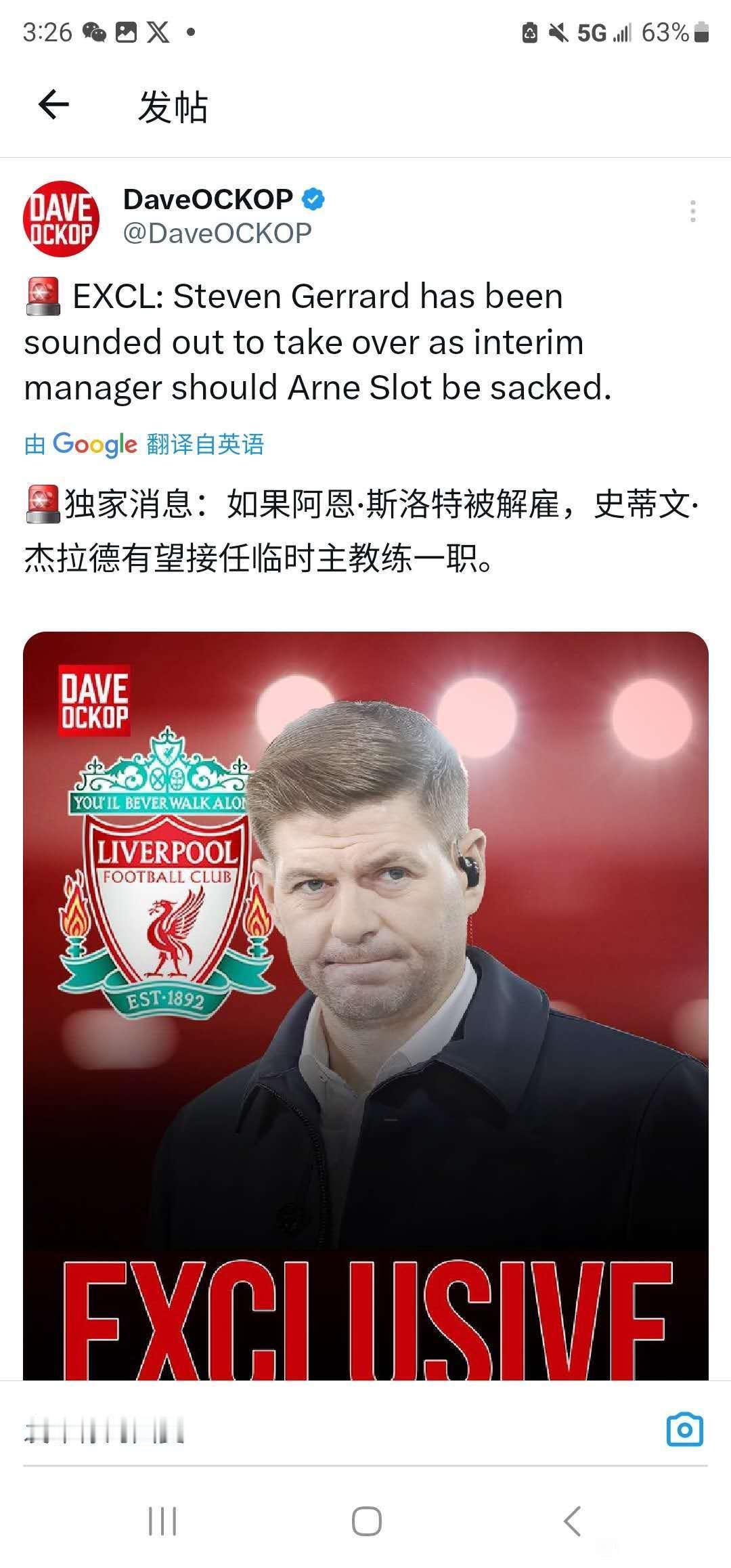 外网都在说杰拉德当利物浦主教练,大家怎么看? 我认为杰拉德没有英超冠军,执教经历也一般,估计是过渡型。 利物浦还得认真找一个!! 水晶宫的那位或许不错。[震惊]