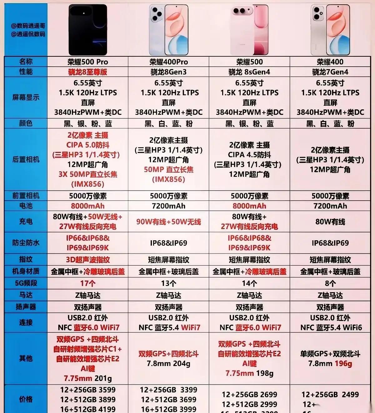 别再说加钱不值!荣耀500这波升级,是直接让老用户破防的“背刺局”! 当初觉得荣耀400香?抱歉,500系列一出,手里的机子瞬间变味了! 就问你:多花200块钱,换来什么? ✨无线充电安排上 ✨IP69K防水防尘 ✨四频北斗精准定位 ✨直接怼上8000mAh巨电池 这哪是挤牙膏?这是把“旗舰四大件”一口气全下放了!别说加200,这配置放别的牌子,加500都未必给全! 所以说——等等党终将胜利,新机才是真香!📱💥