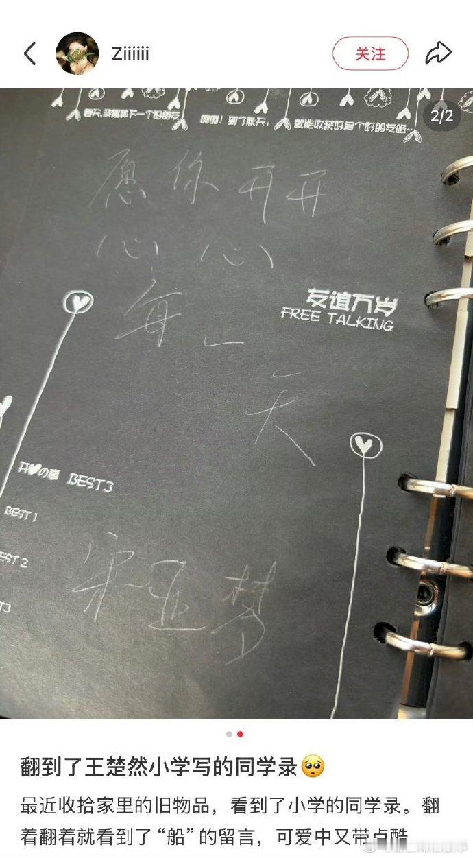 王楚然的同学录王楚然的人生格言 谁能想到小学生王楚然这么有主意!同学录里写下 “