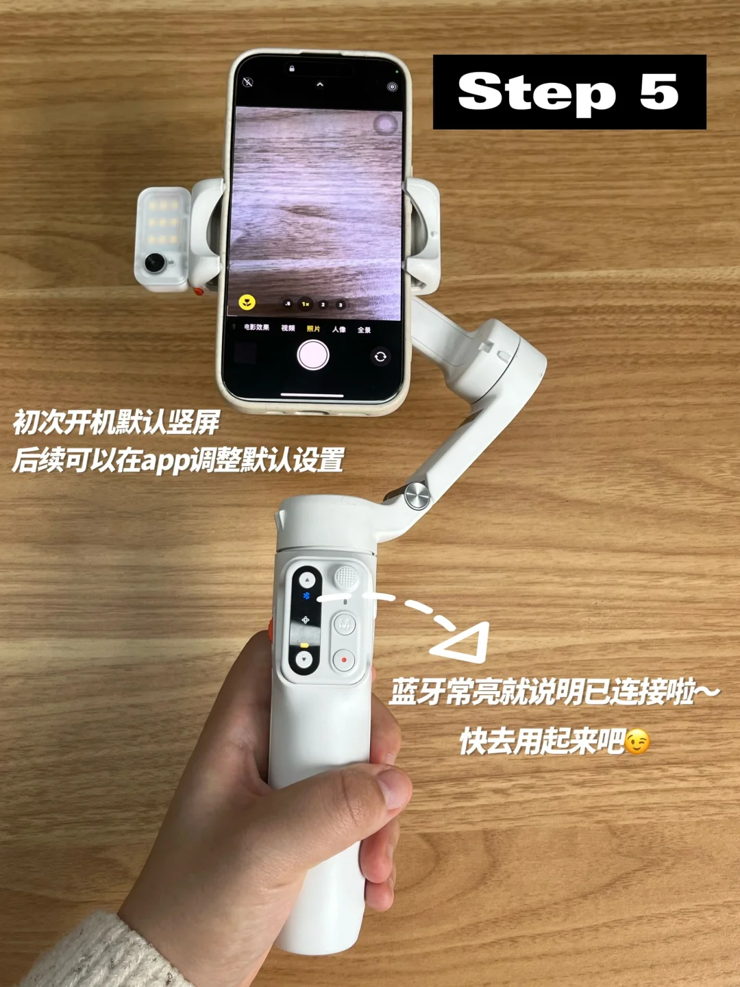 连接好蓝牙后,我们就可以正式使用稳定器来拍摄啦~非常方便简单呢