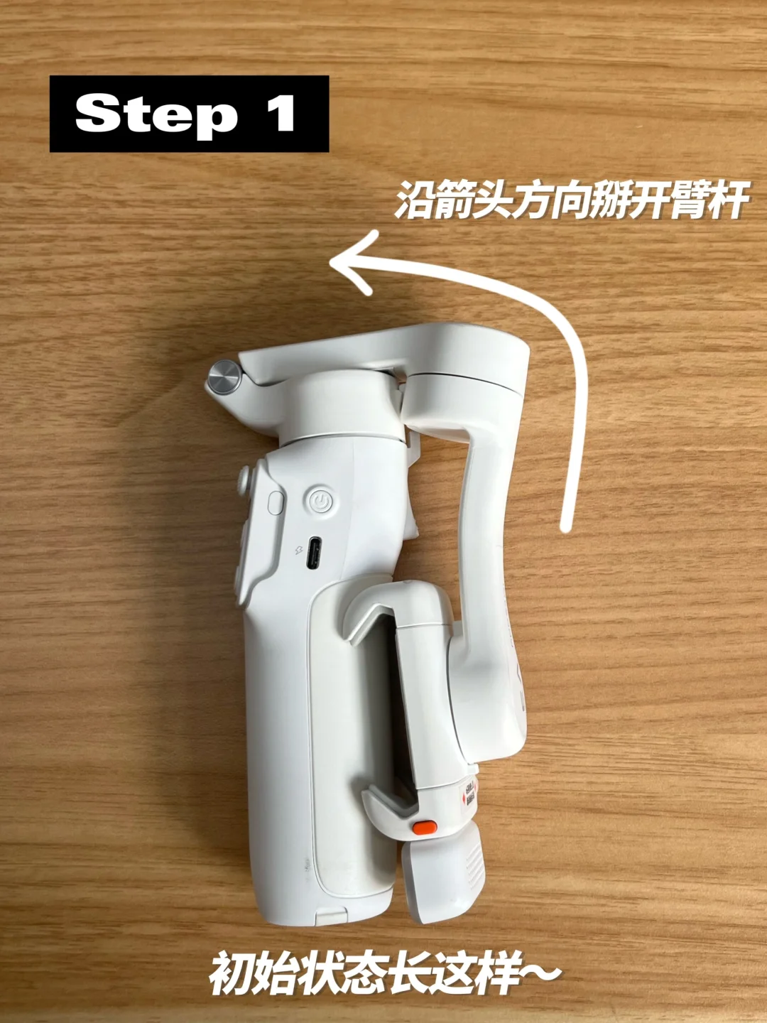 接着就是开机:长按电源键 3 秒,稳定器就开机啦,初次开机默认竖屏哦,如果想要设置开机默认的横竖屏方向,可以通过 Hohem Joy App 来进行设置。