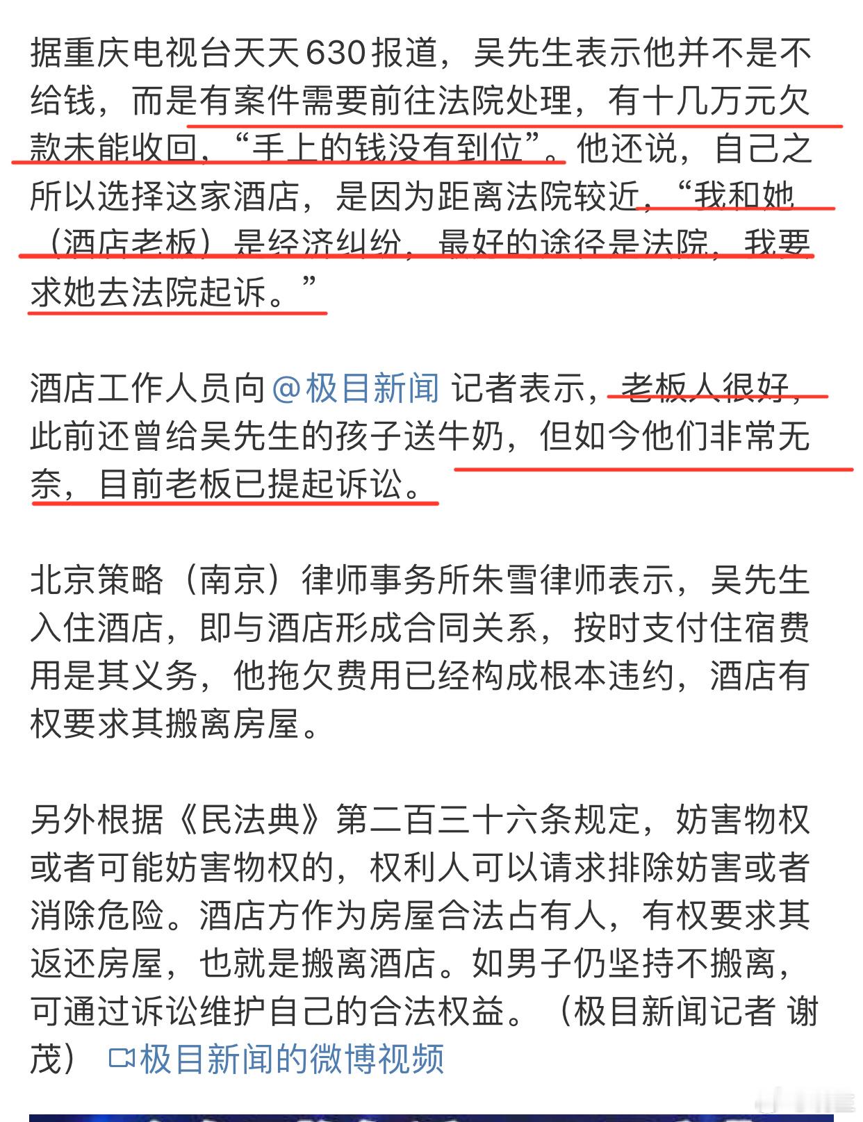 男子欠近5000元房费酒店倒贴都不搬看这事儿,明显有点拿社会事件换取对自己法律案件重视的嫌疑?一个大写的“可怜之人必有可恨之处”自己无法处理的问题,于是去找到另一个可怜人制造苦难,试图缓解自己遇见的问题是吗这样真的能解决问题?其实只是通过不断制造矛盾来给自己的生活施压罢了