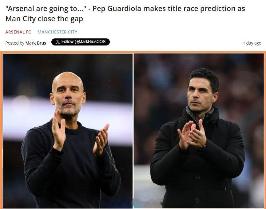 阿森纳最近接连丢分,不过瓜迪奥拉最近接受采访时表示,他不认为枪手会继续这样丢分。曼城主帅表示:“我有感觉,即便如今他们丢了一些分,但阿森纳未来只会丢很少、很少的分数。如果我们想占据榜首,就必须赢下一场又一场比赛,并且要靠表现赢下这些比赛,而不是靠运气……”