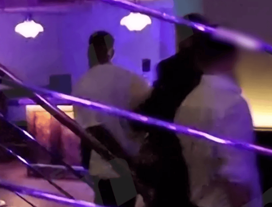 感觉是对面想讹点钱 在酒吧这种场所 不经过同意把手搭在别人脖子上 对方觉得你图谋不轨 做出一定的自卫动作完全合理