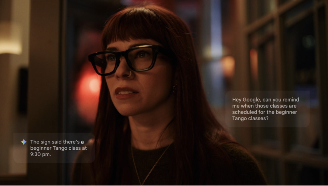 其中,两款AI眼镜包括:专为无屏幕辅助而设计的AI眼镜,它利用内置扬声器、麦克风和摄像头,使得用户可以与Gemini进行自然对话、拍照和获取帮助;显示型AI眼镜,它在镜片上增加了一个显示屏,可以在用户需要时私密地显示有用的信息,例如逐向导航或翻译字幕。谷歌透露,首批此类眼镜将于明年上市。