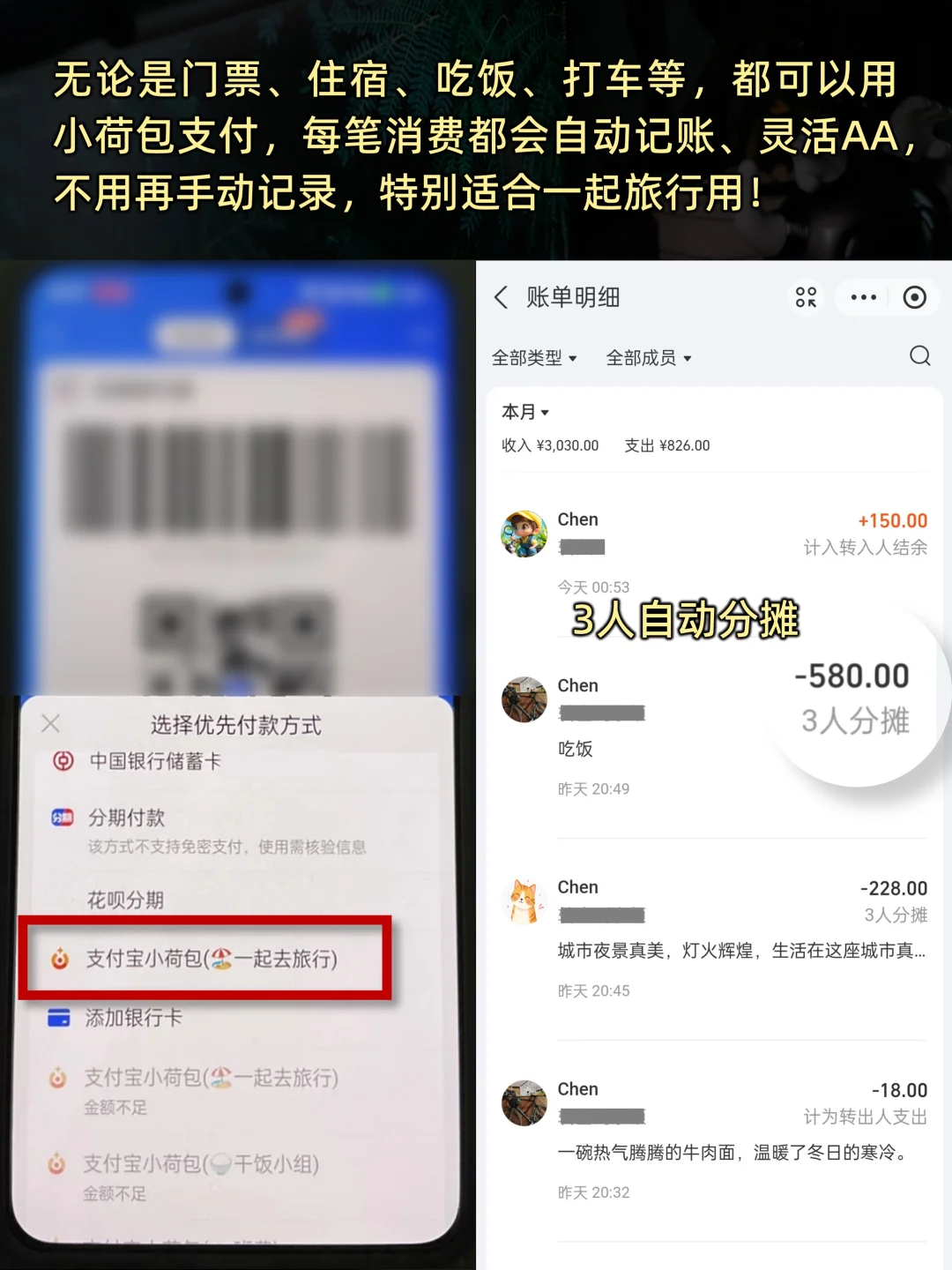 你们是不是也经历过这样的尴尬时刻:和朋友旅行完算钱算到半夜,有人垫付几百上千块不好意思催,有人记混账单怕吃亏,最后钱没算清还伤感情😭…直到发现支付宝小荷包,多人旅行AA的尴尬终于离我远去了。