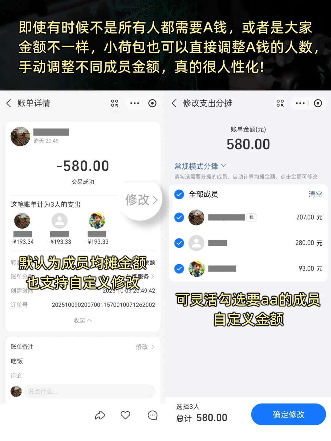 出发前建个集体荷包,把大家都拉进来,按预算每人转一定的金额进去。订酒店、机票、高铁票、景区门票、吃火锅等等直接从小荷包扣,根本不用谁单独垫付,系统自动一键分摊,连零头都算得明明白白,事后完全不用再扒着账单算账。