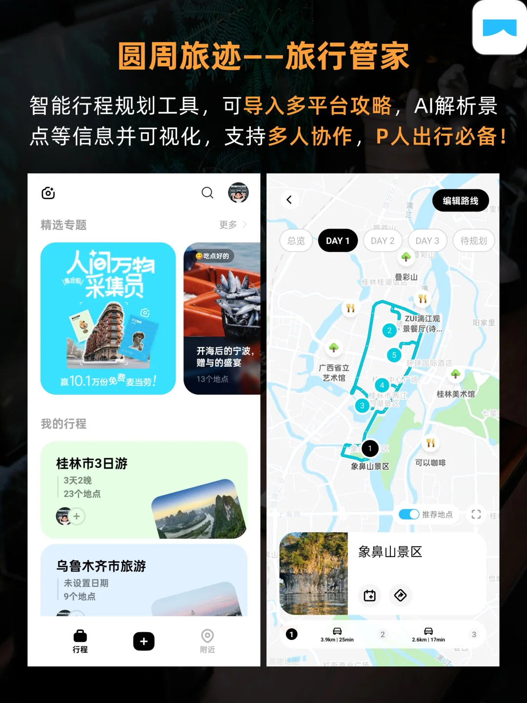 一款功能强大的智能行程规划工具,支持导入、大众点评等平台的攻略链接,AI自动解析景点、美食、住宿等关键信息,并以可视化形式呈现,非常适合P人出行。