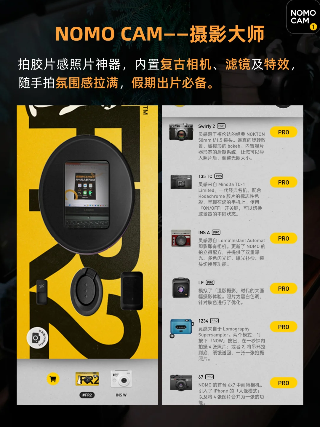 想要拍出胶片感照片就靠它,内置超多款模拟复古相机、胶片质感滤镜,还有鱼眼、电影效果等特效,随手一拍都色彩浓郁、氛围感拉满,是假期出片的秘密武器!