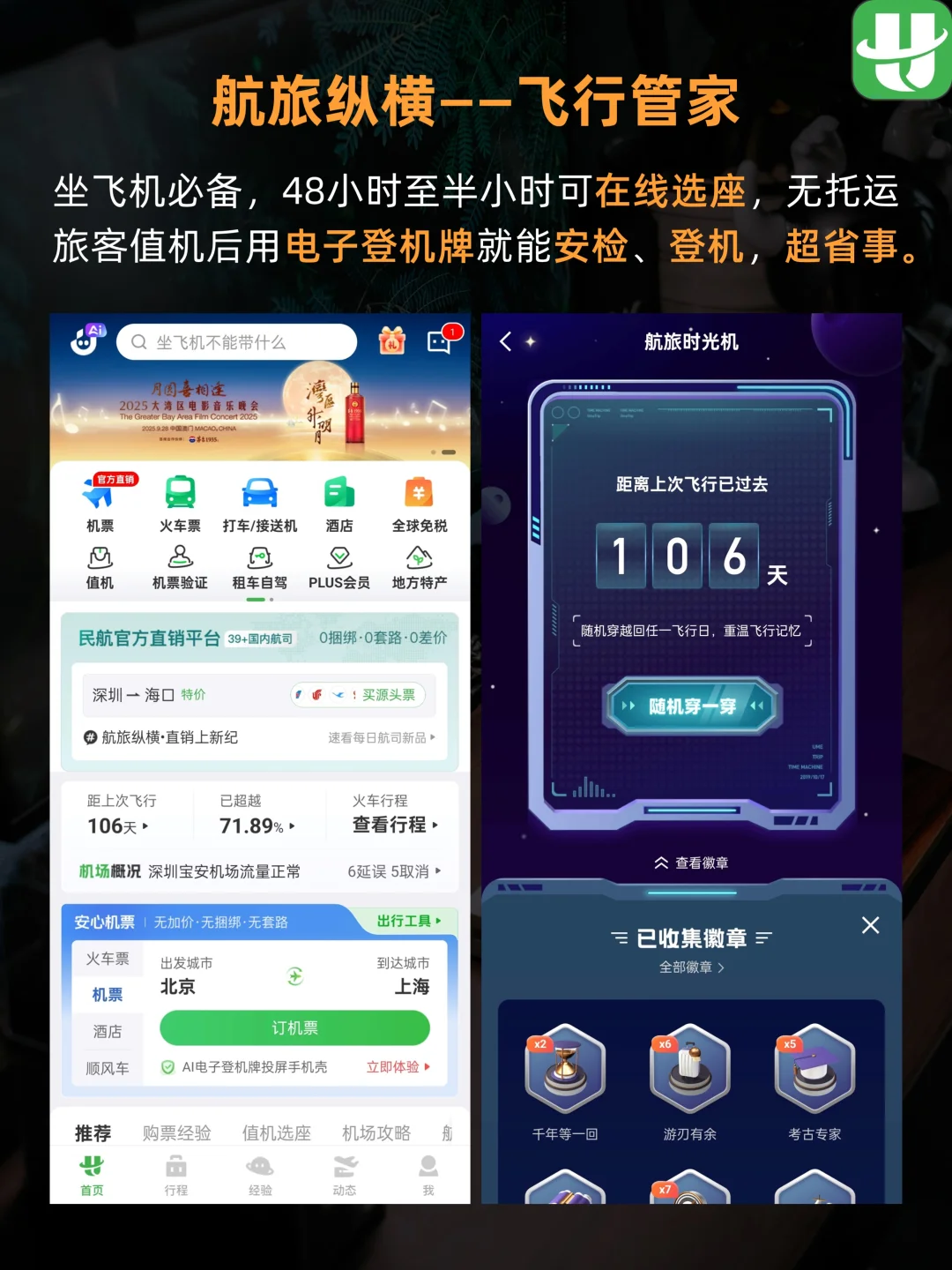 坐飞机必备的 APP,提前 48 小时至半小时可在线选座,轻松锁定靠窗位!无托运行李旅客值机后生成电子登机牌,直接用于安检、登机,省去打印排队时间。