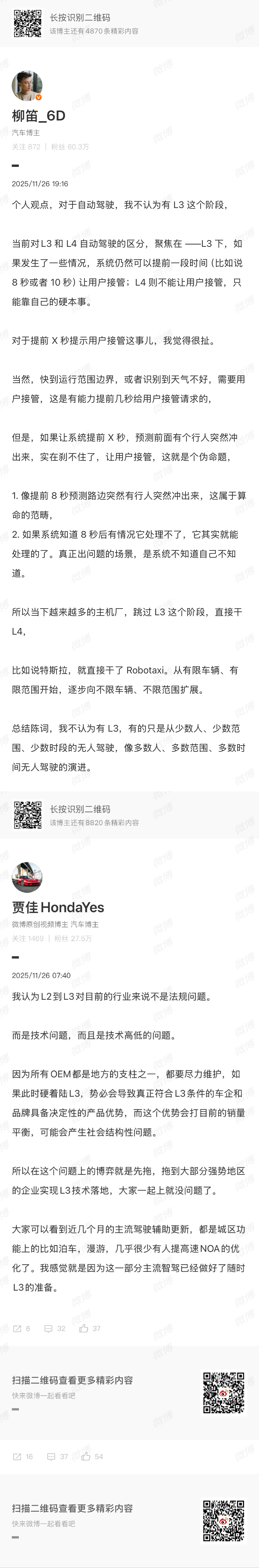 非常非常认同苏箐这张图,L3 就是短暂过渡,在用户那里,没办法跟大家解释需要提前 X 秒做好接管准备这件事儿。对于大多数人,就是要么我自己开,要么车自己开,L3 更像是法规规定出来的一种形态」,技术发展到一定阶段,就顺手做一下跟个时髦