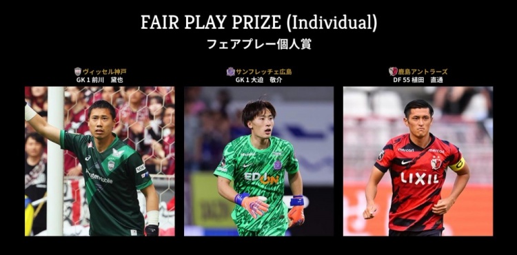 公平竞赛球员奖得主:前川黛也(神户胜利船)、大迫敬介(广岛三箭)、植田直通(鹿岛鹿角)