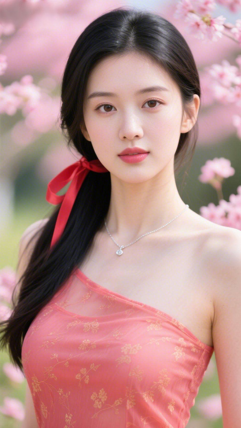 绯樱映佳人 绯樱漫枝,如云似霞,将春日的温柔尽数揉进眉眼。一缕红丝带轻绾青丝,似撷了东风的暖意,落在发间成了最动人的点缀。浅粉衣衫缀着细碎金纹,如把春日繁花的韵致悄悄藏于身,与漫天樱色相映成趣。 无需刻意修饰,这份自然的美好,是时光赋予的温润,是岁月沉淀的从容。樱花开得热烈,佳人立于其间,眉眼清澄如清溪,藏着不慌不忙的美好。 生活的浪漫,大抵就是这般——于繁花处见温柔,于日常里守初心,每一寸光景,都裹着人间值得的暖意。 春日雅韵 东方之美