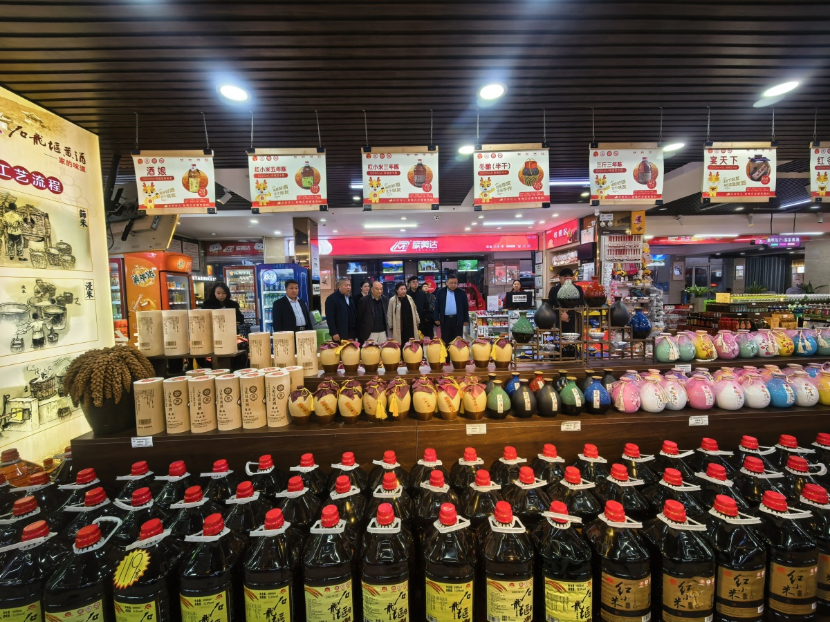 在河南的超市里,南阳市西峡县的石龙堰黄酒展区前,一位巩义籍老领导讲述他在巩义高速服务区见到石龙堰黄酒专柜时感叹道:“陈列规模很大,很震撼,展示效果不错,石龙堰黄酒有眼光。”
