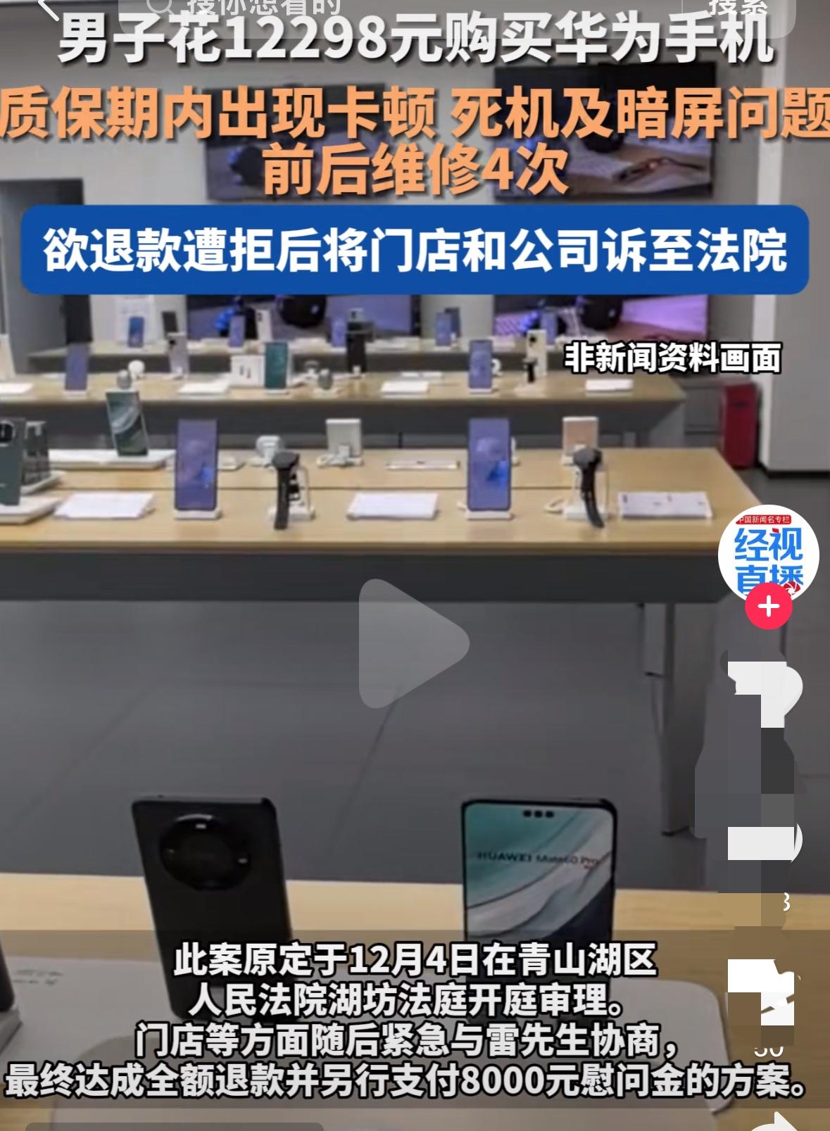 江西南昌,男子花 12298 元买了一部华为手机,使用一年后,手机出现卡顿、死机、暗屏多个问题。男子将手机送到服务中心维修,取回后,发现原有问题没解决,手机后盖又出现密封不严,维修人员说需返厂处理,之后,手机经过 4 次维修,始终没解决问题。男子对品牌失去信心,质保期内要求退换机,被拒后,将对方告上法庭,要求赔偿 12298 元购机款,以及精神损失费 1 元。而最终的结局,令所有人意想不到! 家人们,你们见过花12298元买的华为手机,修了4次都搞不定,最后起诉还能不仅全款拿回购机款,还多拿8000元的事儿吗? 2024年4月,南昌雷先生买了华为Pura 70 Ultra,一年后各种毛病就来了。送修多次,问题依旧,连后盖都密封不严。质保期内要求退换机,还被以 “未达换机标准” 拒绝。 雷先生一气之下告上法庭,本只要回购机款加1元精神损失费,没想到开庭前华为主动和解。最后不仅全额退款,还额外给8000元慰问金。 大品牌售后得靠谱啊!这次华为的处理虽说最后还算让人满意,但前期维修的种种问题也该反思。大家怎么看?旗舰华为手机