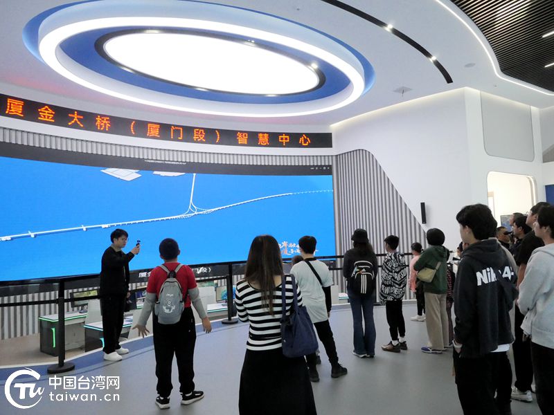 金门青少年在厦金大桥(厦门段)智慧中心内参观。(中国台湾网发)