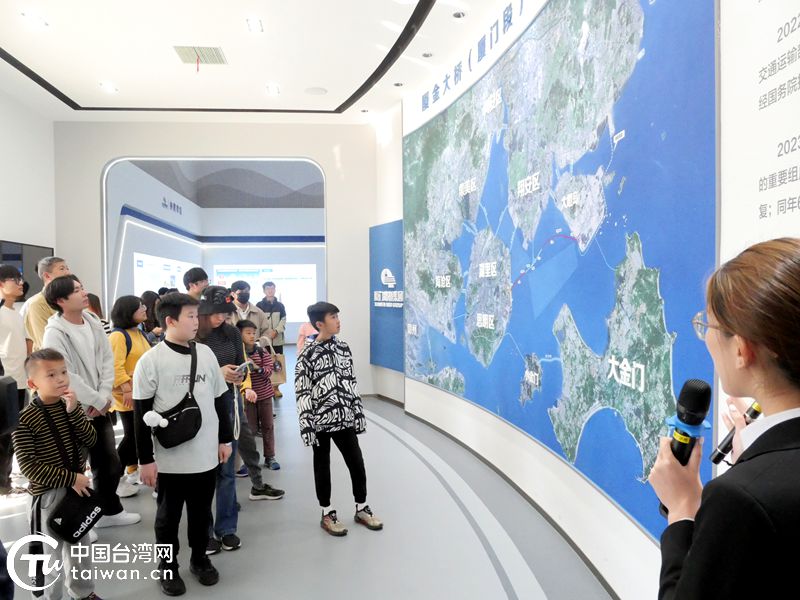 在厦金大桥(厦门段)智慧中心内,金门青少年们通过数字影像详细了解该项工程的建设总览,并从实物建设机械中了解到建设过程。参观完展厅后,大家还登上展厅二楼,远眺金门和厦金大桥(厦门段)建设现场。