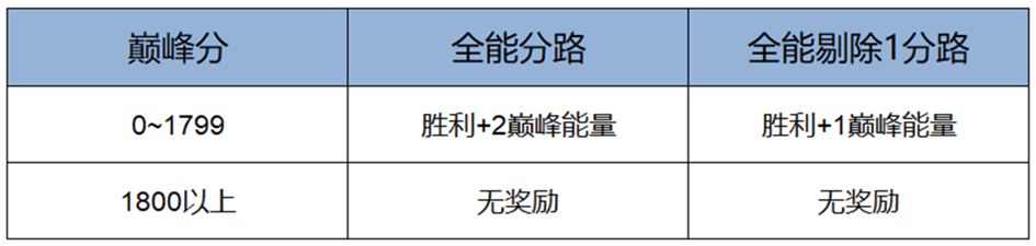 随着巅峰积分的调整,[全能]分路的加减分规则也迎来了全新的调整:当玩家巅峰分低于1800以下时,补位胜利将获得额外的巅峰能量。