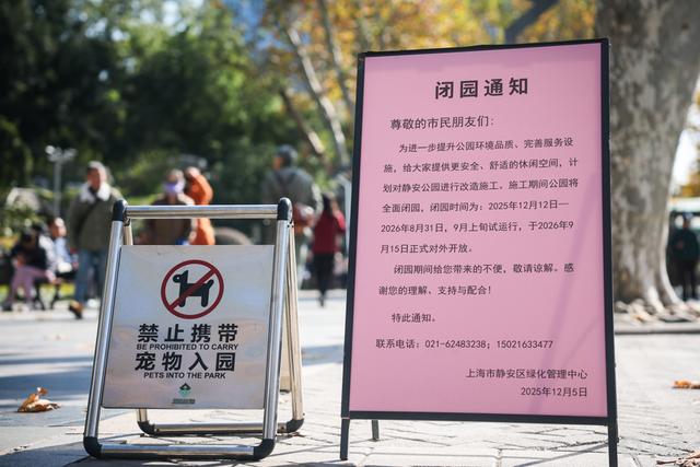 静安公园将于12月12日起全园闭园,启动整体改造。