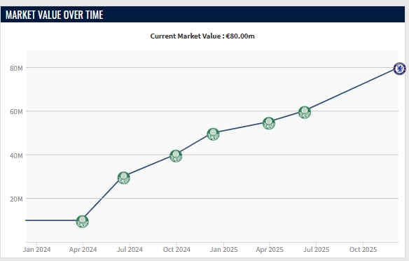 18岁埃斯特旺身价从6000万欧升至8000万欧。