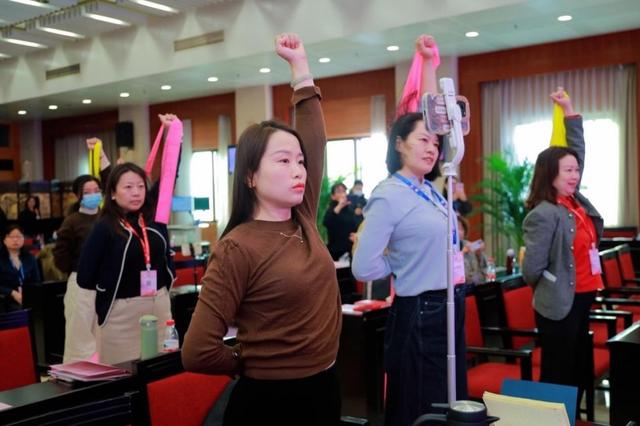 国家体育总局运动医学研究所专家现场演示运动弹力带操,并邀请全体与会人员参与互动